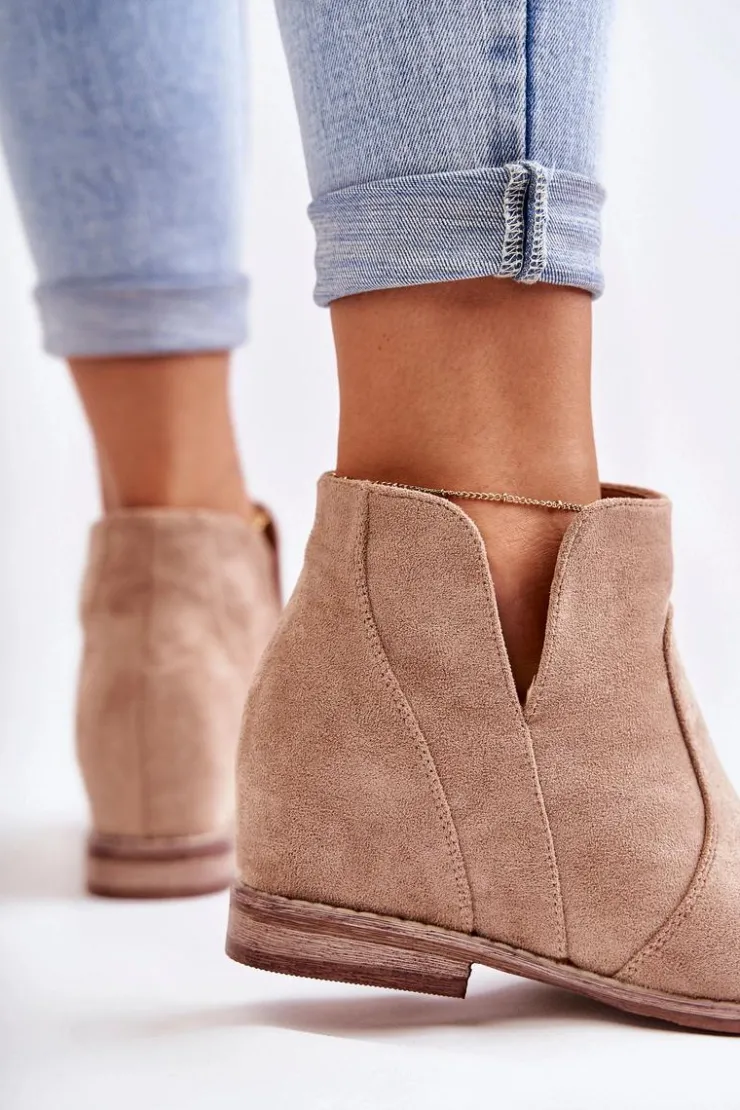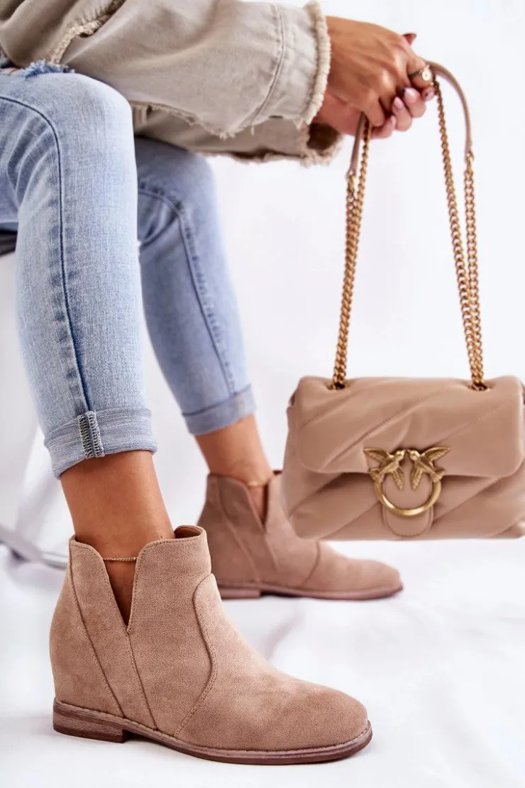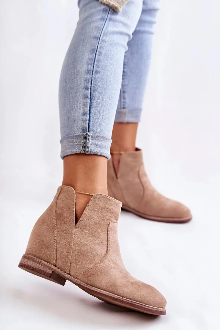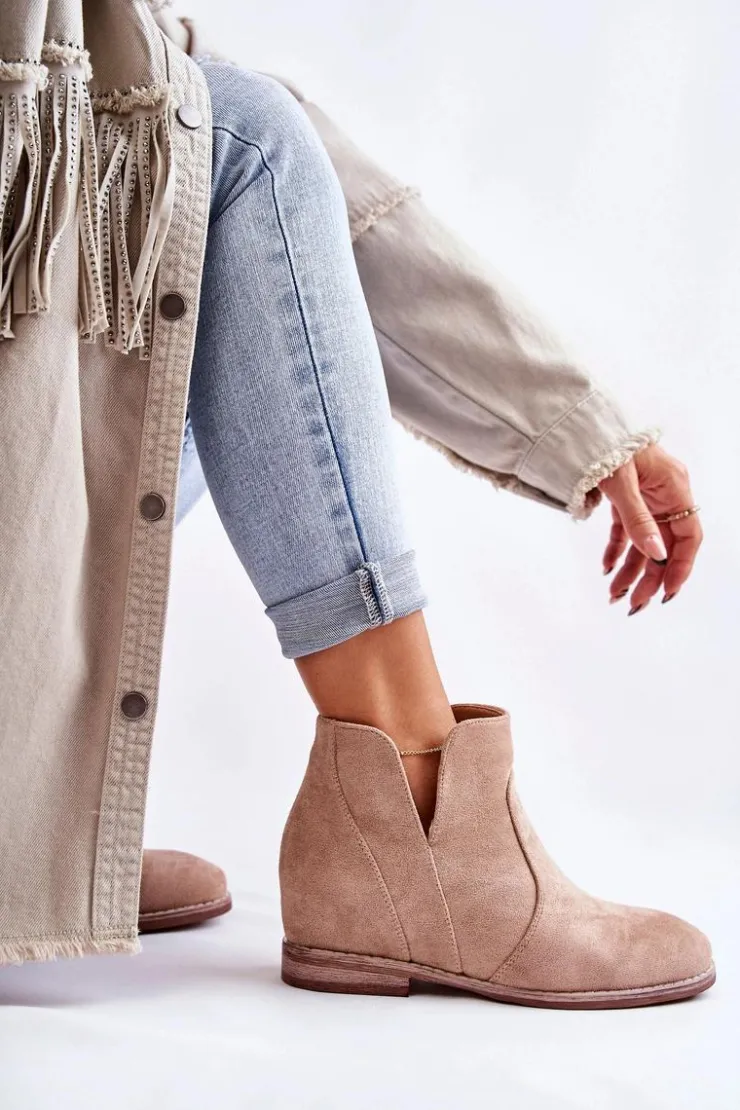 Cudowne botki na ukrytym koturnie i płaskim obcasie. Posiadają cholewkę za kostkę z wycięciami po bokach. Model wsuwany. Wykonane z wysokojakościowego eko zamszu. Miękka wkładka z eko skóry oraz usztywniany zapiętek pozwala na wygodne użytkowanie. Ten model sprawdzi się podczas wielu sezonów! Koniecznie powinnaś je mieć w swojej szafie! Przy wyborze rozmiaru prosimy sugerować się tabelą rozmiarów.