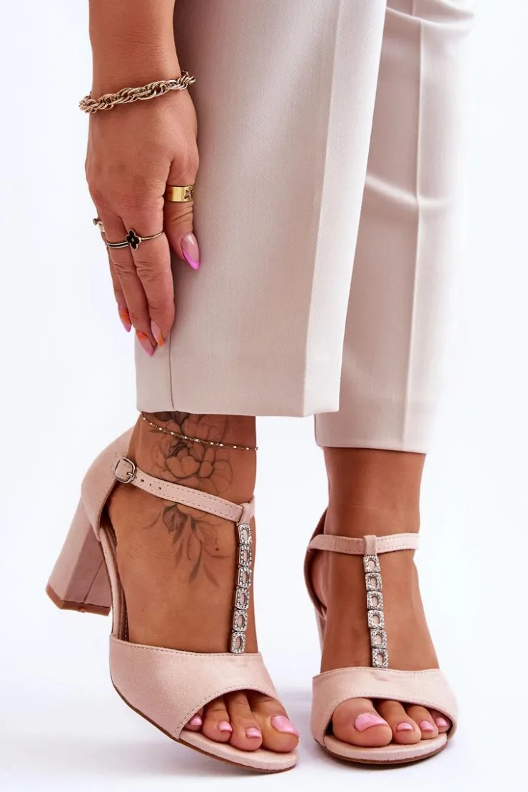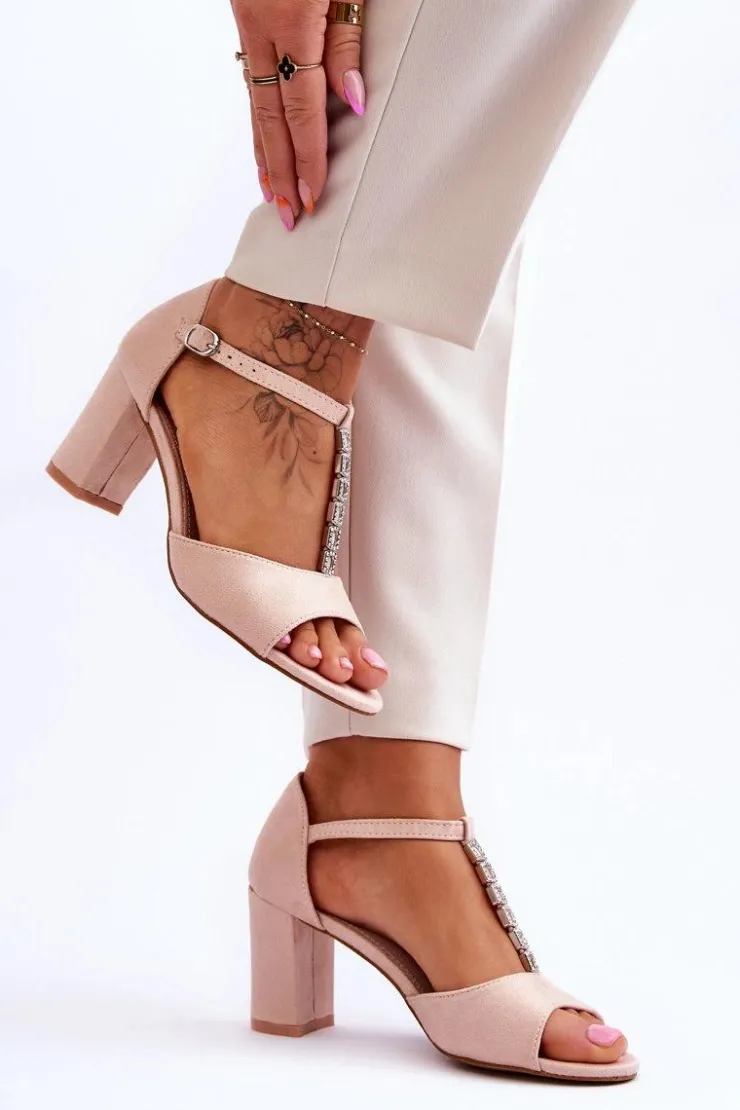 Damskie buty S.Barski Sandały Na Obcasie*Damskie Sandałki Zamszowe Na Słupku Beżowe Florines