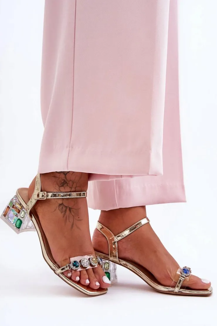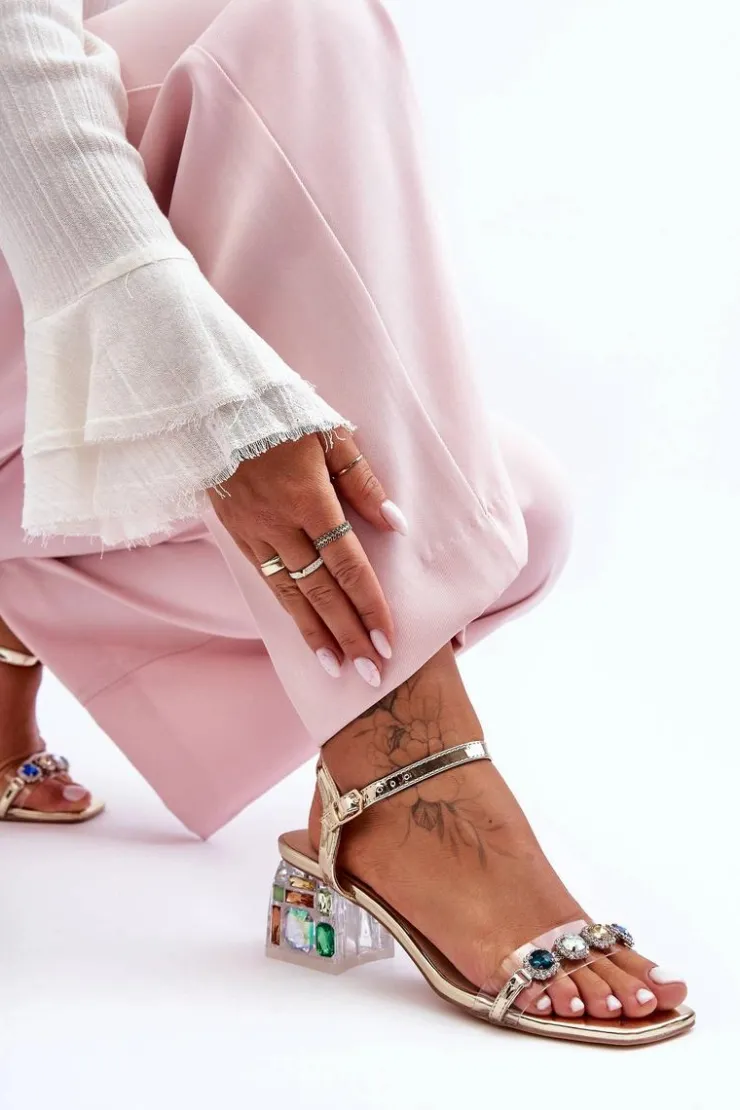 Cudowne sandały damskie wykonane z eko skóry oraz tworzywa sztucznego. Osadzone na niskim, zdobionym obcasie w postaci klocka. Buty posiadają ozdobne dżety na przodzie. Sandałki są zapinane wokół kostki na regulowany pasek ze sprzączką. Miękka wkładka z naturalnej skóry zadba o Twój komfort podczas użytkowania. Przy wyborze rozmiaru prosimy sugerować się tabelą rozmiarów.