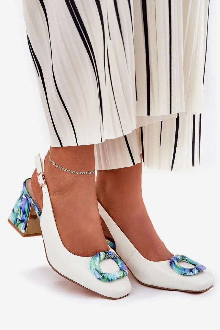 Damskie buty S.Barski Sandały Na Słupku|Sandały Na Obcasie*Skórzane Sandały Damskie Na Słupku D&A CR51-002 Białe