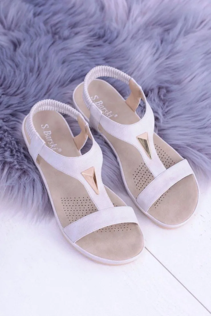 Damskie buty S.Barski Sandały Płaskie*Damskie Szare Sandały z Elastyczną Gumką Riben