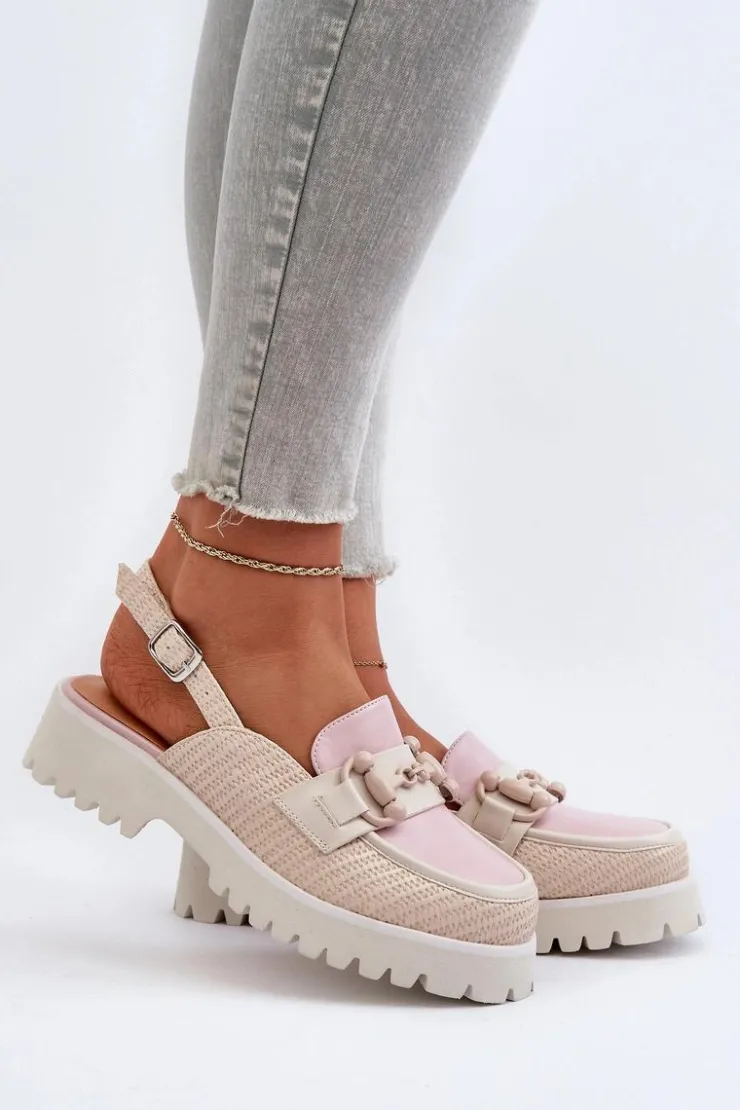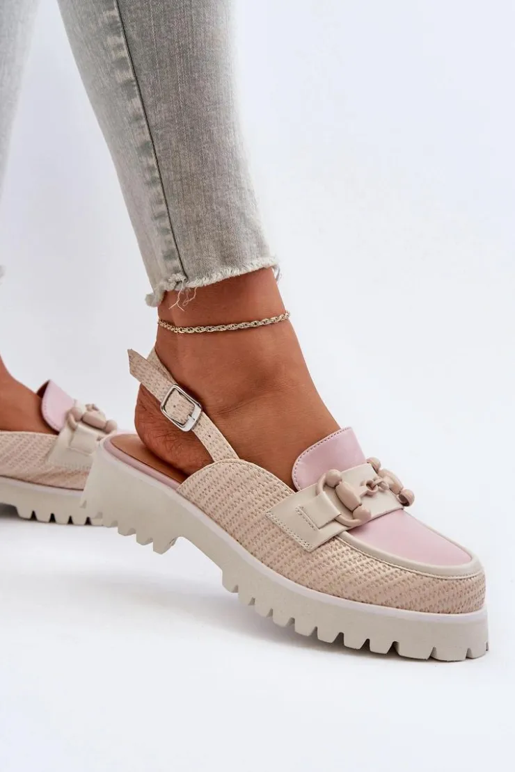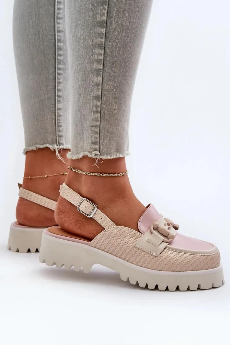 Damskie buty S.Barski Sandały Płaskie*Sandały Damskie Na Płaskim Obcasie Z Ozdobą Beżowe D&A MR38-656 Beżowy