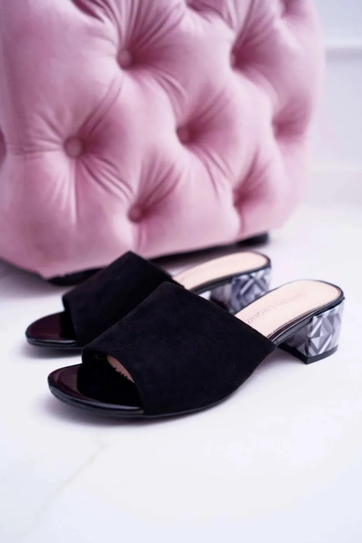 Damskie Buty Sergio Leone Klapki Damskie Eleganckie Na Klocku Zamszowe Czarne Valencia