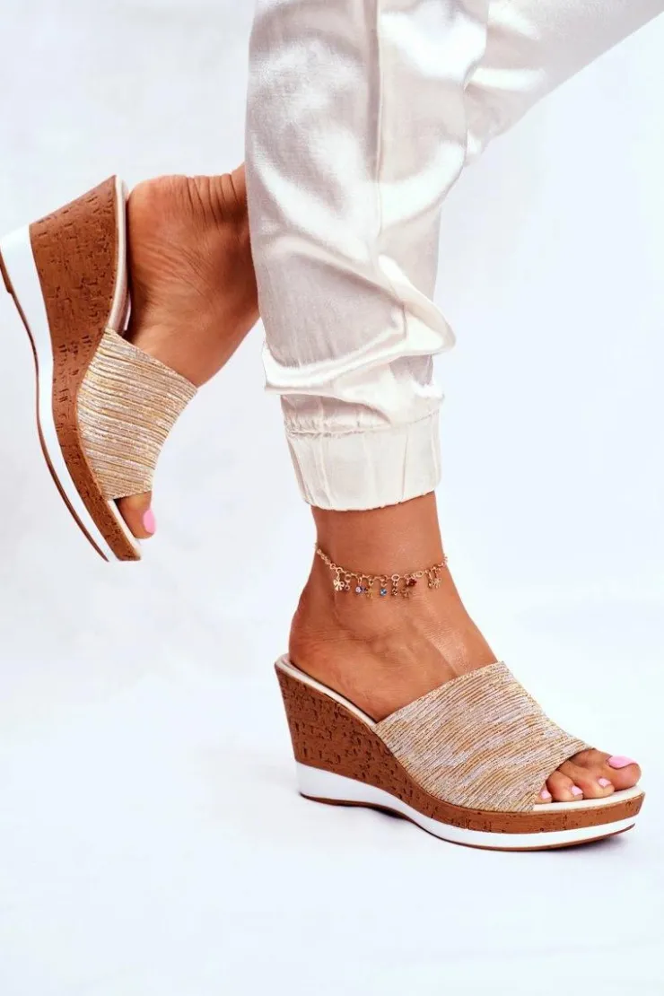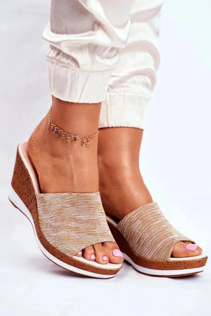 Damskie Buty Sergio Leone Klapki Damskie Na Koturnie Sergio Leone Beżowe SK320