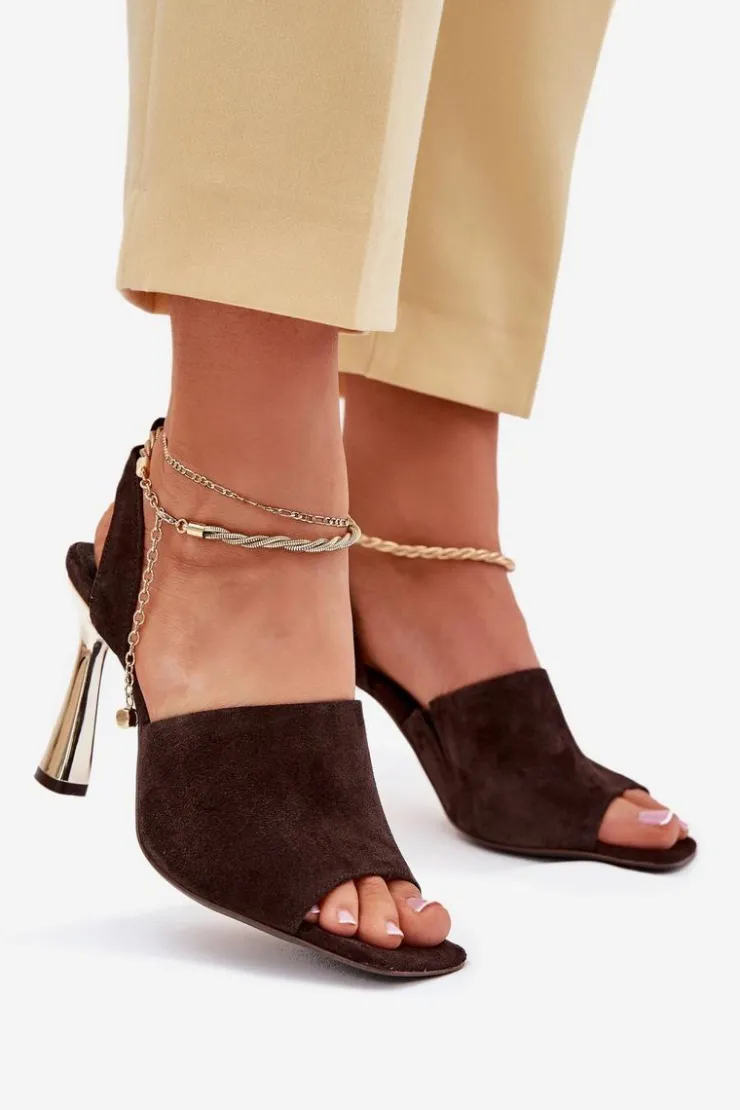 Sandały damskie od marki CheBello wykonane z wysokiej jakości naturalnego zamszu. Osadzone na smukłej szpilce, z subtelną bransoletą wokół kostki, dodającą elegancji i szyku. Idealne na wyjątkowe okazje oraz wieczorne wyjścia, łączą w sobie styl, klasę i komfort noszenia. Przy wyborze rozmiaru prosimy sugerować się tabelą rozmiarów.