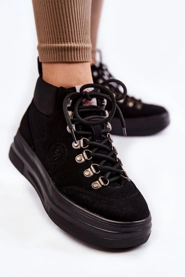 Botki w stylu traperów idealnie sprawdzą się na chłodniejsze dni! Zostały wykonane z połączenia imitacji zamszu i materiału syntetycznego. Posiadają klasyczne sznurowanie na okrągłe sznurówki. Model z dodatkowo usztywnianym zapiętkiem. Trapery osadzono na grubej, masywnej platformie. Doskonale sprawdzą się w jesiennych stylizacjach. Musisz je mieć! Przy wyborze rozmiaru prosimy sugerować się tabelą rozmiarów.