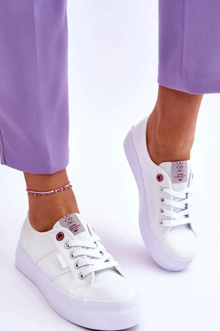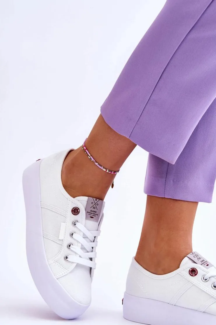 Damskie tenisówki na platformie CROSS JEANS. Buty dobrze dopasowują się do kształtu stopy, posiadają miękką, materiałową wkładkę oraz antypoślizgową podeszwę wykonaną z gumowego tworzywa. Dodatkowo trampki te posiadają usztywniany zapiętek. Koniecznie sprawdź całą naszą kolekcję butów marki CROSS JEANS! Przy wyborze rozmiaru prosimy sugerować się tabelą rozmiarów.