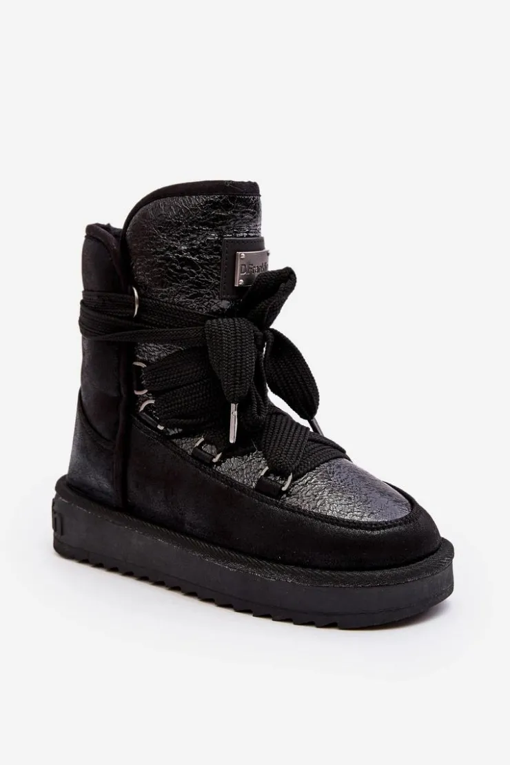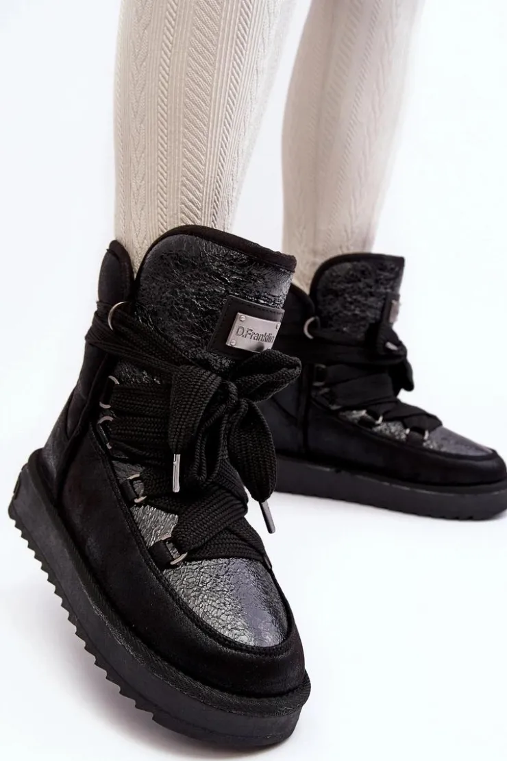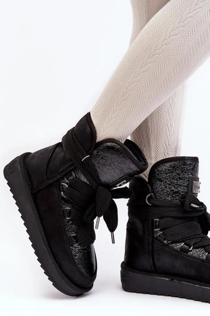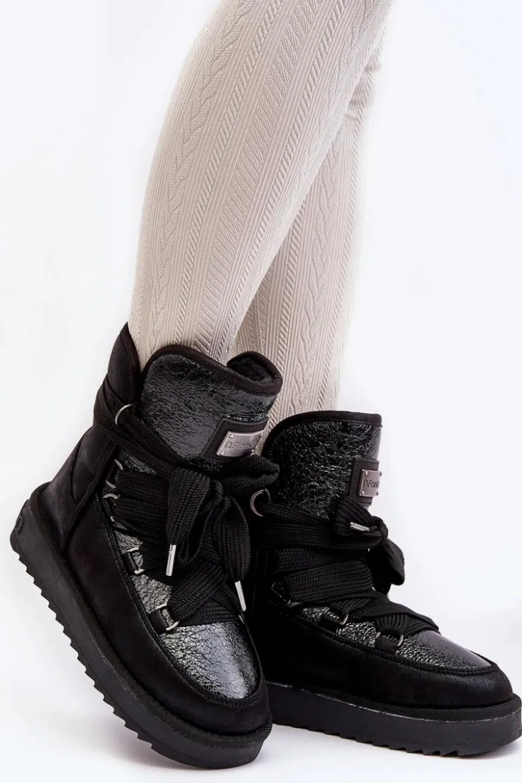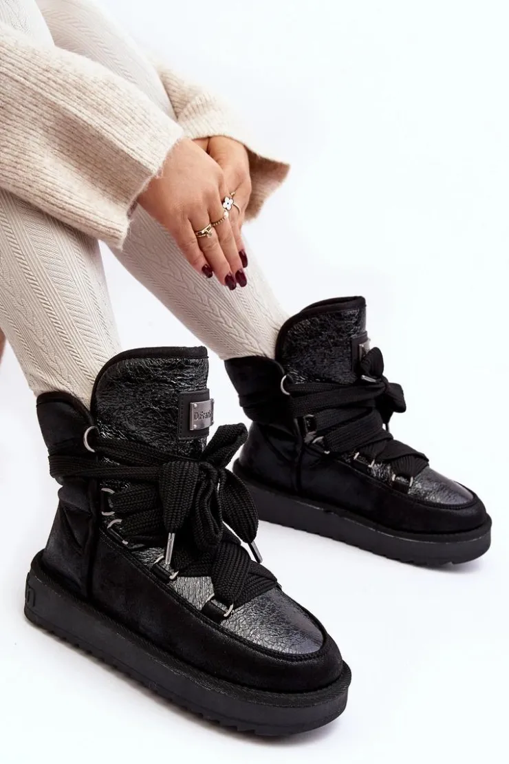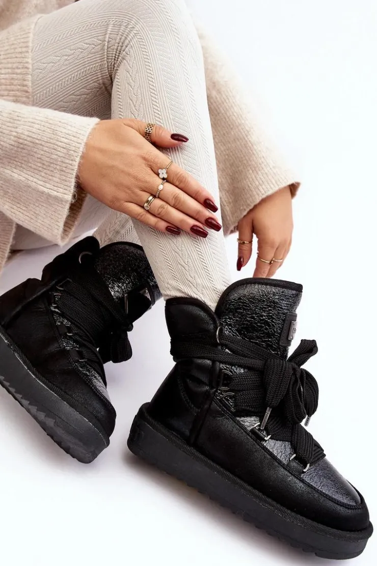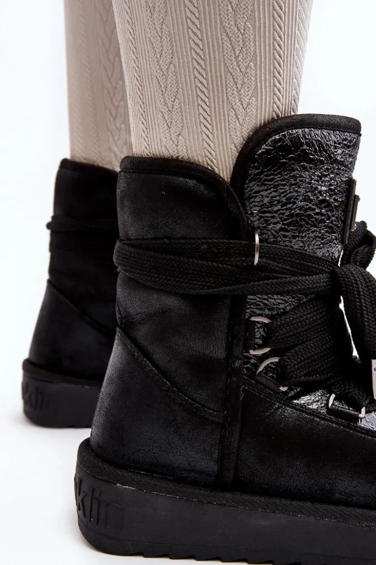 Śniegowce damskie wykonane z wysokiej jakości tkaniny z mikrofibry. Przód butów został ozdobiony połyskującym detalem, co nadaje im stylowego charakteru. Dodatkowym atutem jest fakt, że są wykonane z materiałów wegańskich. Środek ocieplony syntetycznym futerkiem. Model ten posiada grube sznurowadła. Modne i funkcjonalne obuwie, które z pewnością wyróżni się w Twojej kolekcji! Przy wyborze rozmiaru prosimy sugerować się tabelą rozmiarów.