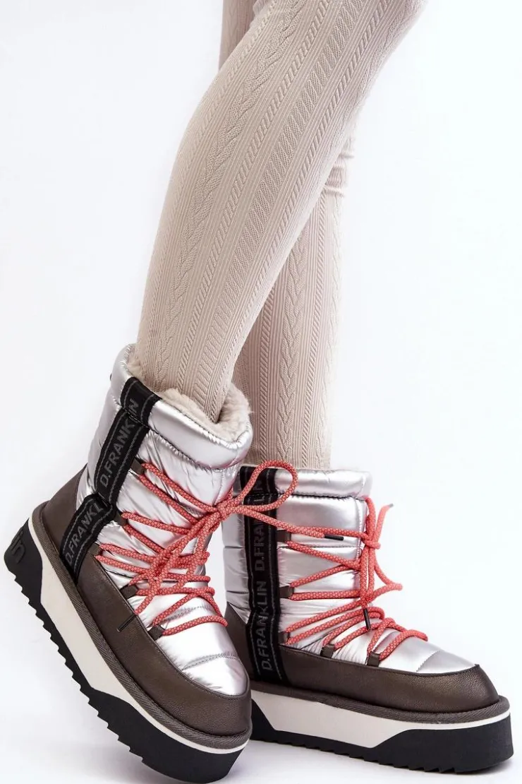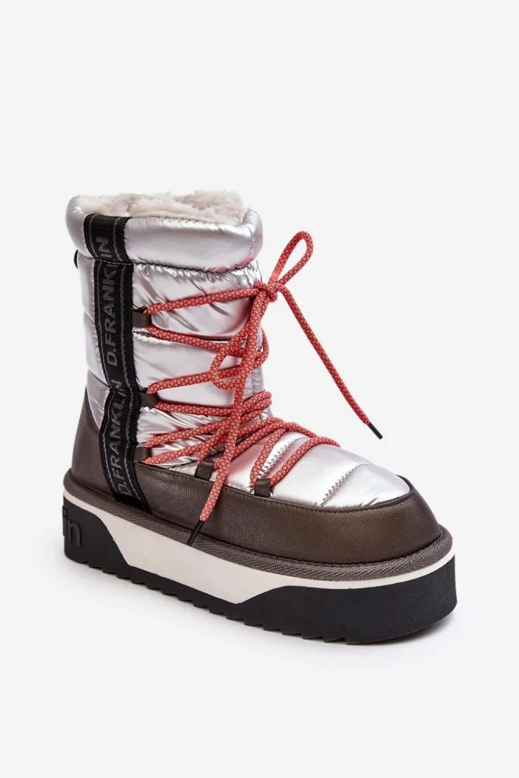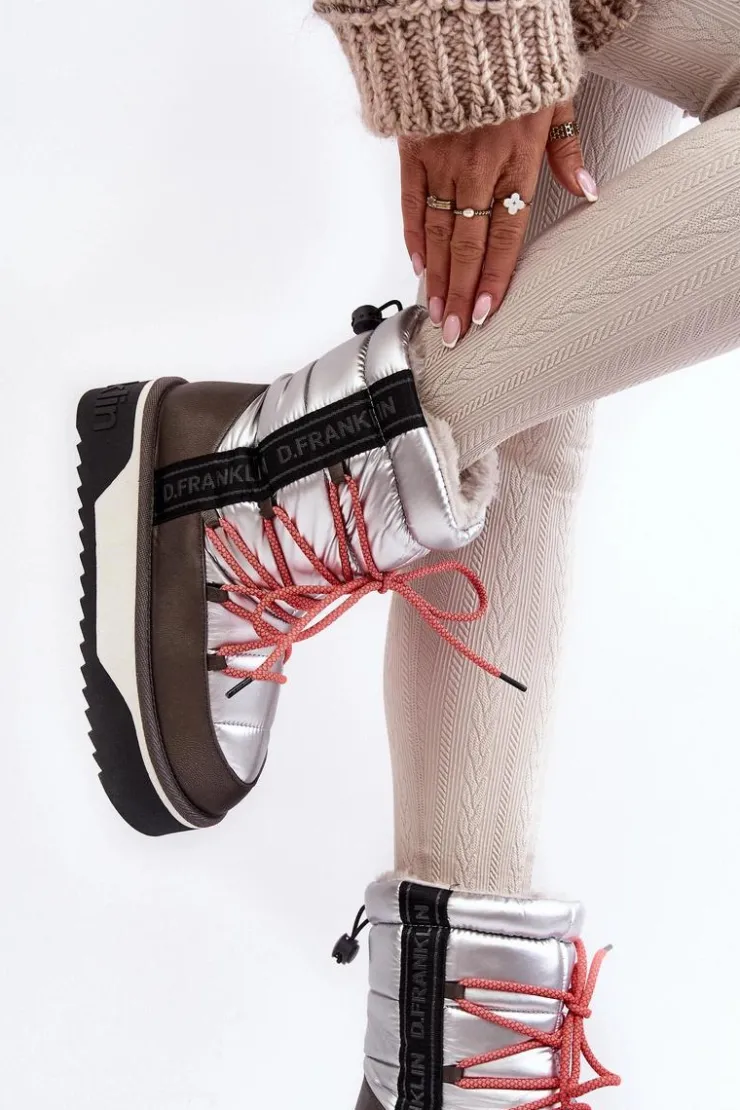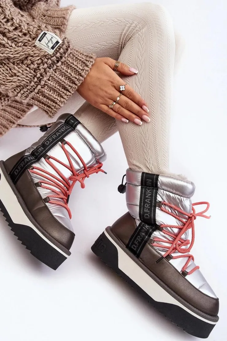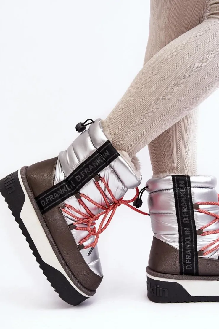 Damskie D.Franklin Śniegowce Damskie Na Grubej Podeszwie Wegańskie DFSH371006 Srebrne