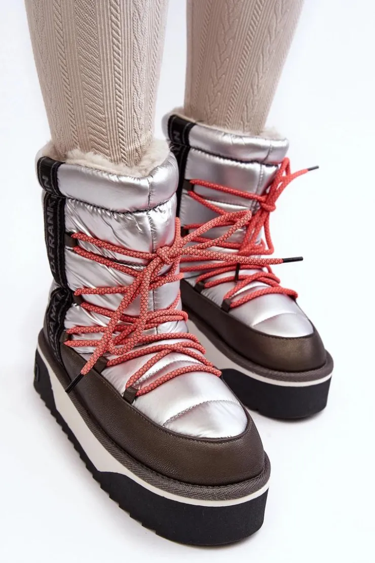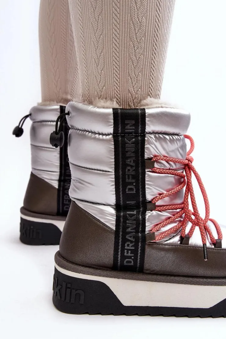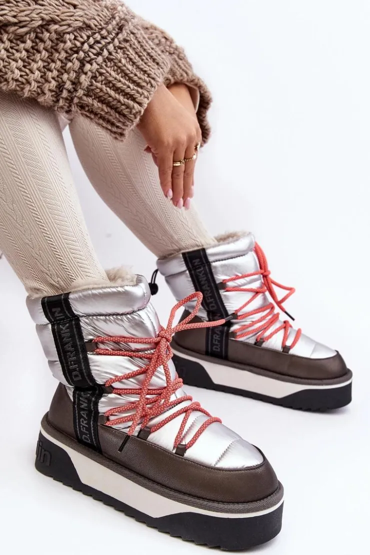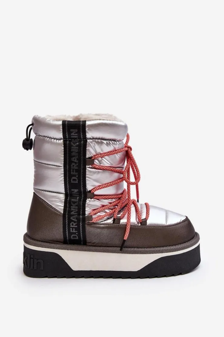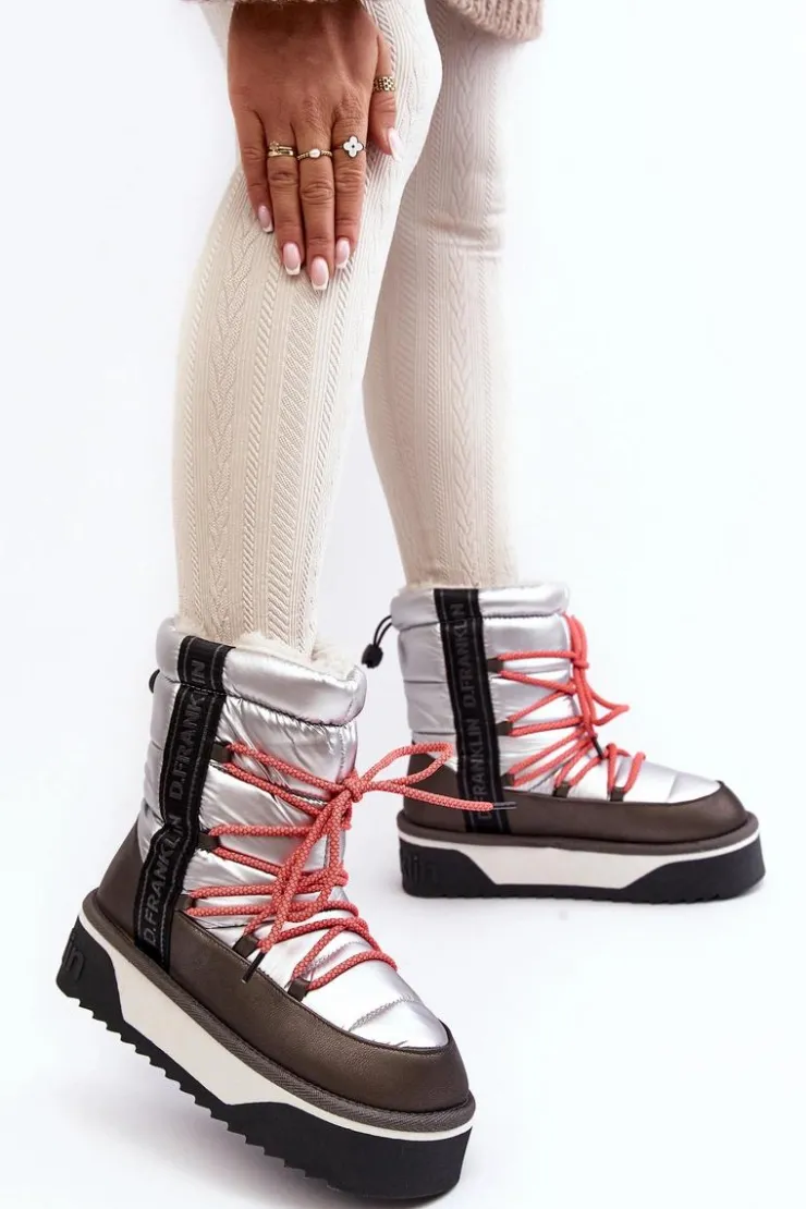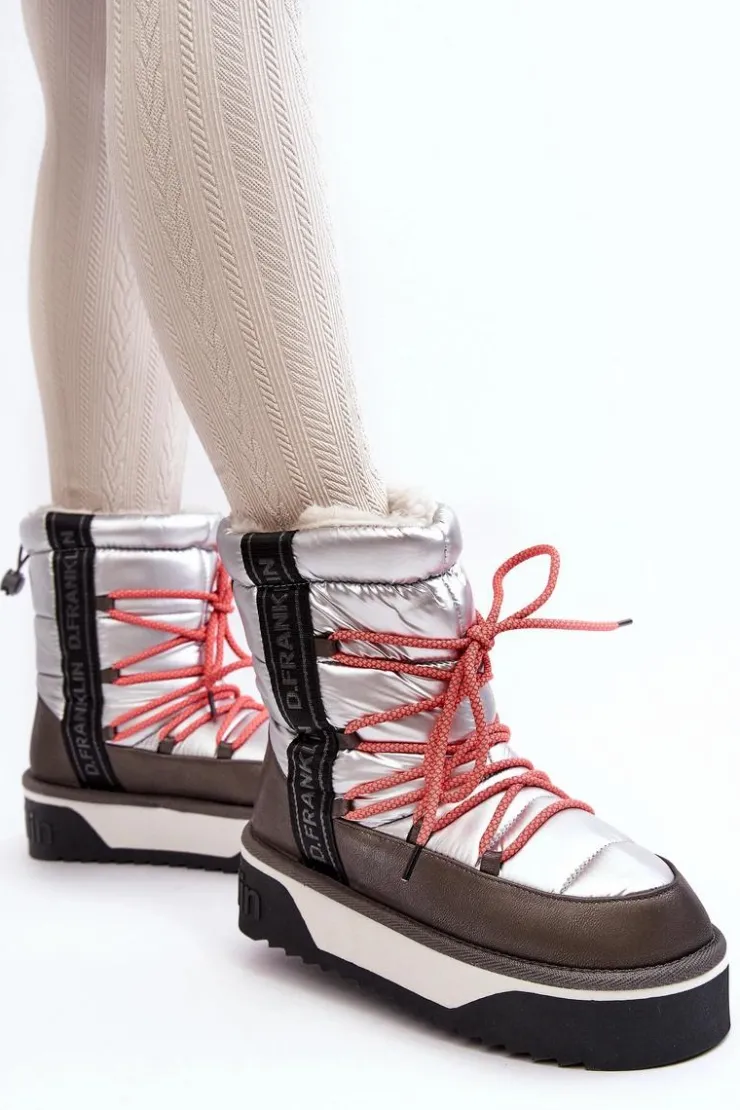 Damskie D.Franklin Śniegowce Damskie Na Grubej Podeszwie Wegańskie DFSH371006 Srebrne