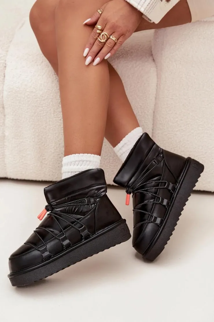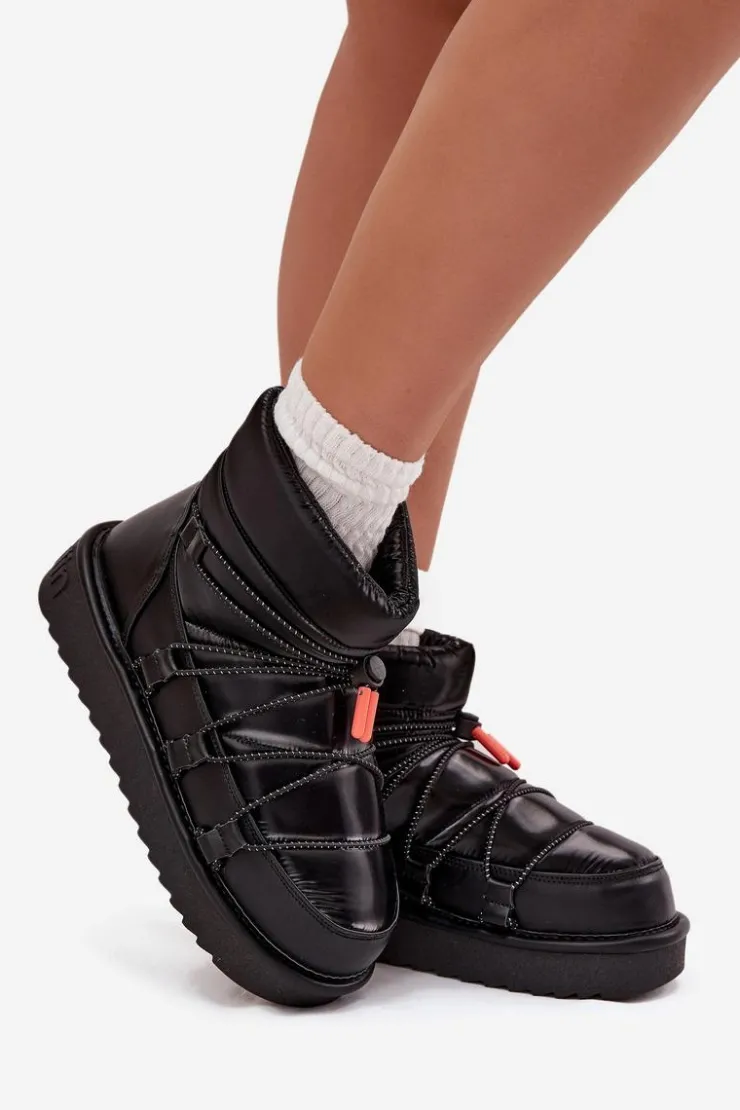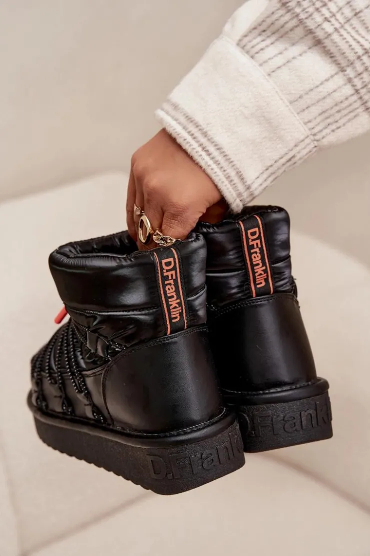 Śniegowce damskie marki D.Franklin. Wykonane z wytrzymałego nylonu i eko skóry, skutecznie chronią przed chłodem i wilgocią, jednocześnie prezentując się modnie i stylowo. Wnętrze ocieplane miękkim futerkiem zapewnia komfort termiczny i wygodę nawet podczas mroźnej pogody. Model osadzony został na podeszwie z gumowego tworzywa, która gwarantuje stabilność i przyczepność na różnych nawierzchniach. Dodatkowym atutem jest ściągacz z przodu, który umożliwia lepsze dopasowanie i chroni przed przedostawaniem się zimna do wnętrza obuwia. To śniegowce, które sprawdzą się zarówno na co dzień, jak i podczas zimowych wyjazdów.