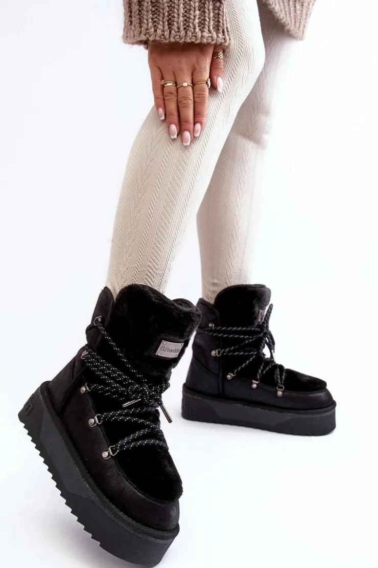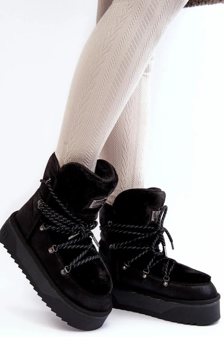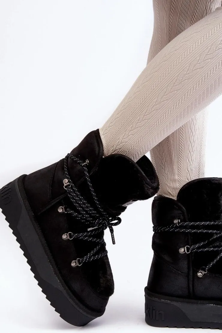 Śniegowce damskie osadzone na grubej antypoślizgowej podeszwie. Wykonane z wegańskich, wodoodpornych materiałów. Środek ocieplony syntetycznym futerkiem. Model ten jest odporny na mróz i zapewnia optymalny komfort termiczny. Śniegowce są wsuwane z dodatkowym sznurowaniem. Przy wyborze rozmiaru prosimy sugerować się tabelą rozmiarów.