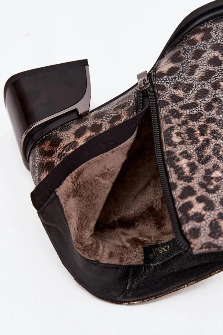 Stylowe i eleganckie botki damskie wykonane z naturalnej skóry to propozycja, która łączy modny wygląd z wygodą użytkowania. Model wyróżnia się efektownym wzorem w panterkę, nadającym wyrazistego charakteru i podkreślającym kobiecy styl. Osadzone na stabilnym obcasie w formie klocka zapewniają komfort noszenia, a praktyczne zapięcie na zamek ułatwia zakładanie i zdejmowanie. Migdałowe noski dodają całości subtelnej elegancji, a dekoracyjne przeszycie biegnące wzdłuż cholewki optycznie wydłuża nogę i podkreśla smukłą linię buta. Ocieplane wnętrze gwarantuje ciepło w chłodniejsze dni, dzięki czemu botki doskonale sprawdzą się w sezonie jesienno-zimowym. To model, który będzie idealnym uzupełnieniem zarówno codziennych, jak i bardziej eleganckich stylizacji.