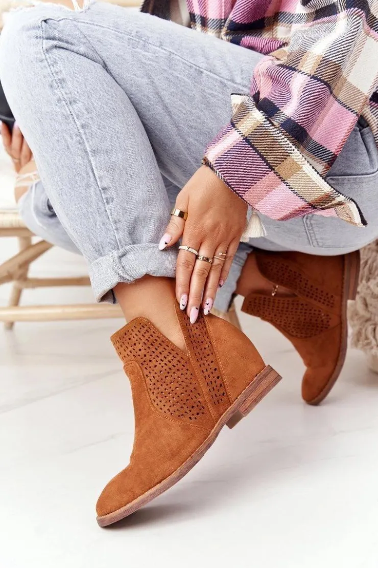 Wyjątkowe, ażurowe botki na ukrytej koturnie. Botki wykonane są z eko zamszu, posiadają miękką wkładkę z eko skóry. Wycięcia po bokach oraz ukryty koturn wysmuklą Twoją sylwetkę. Koniecznie sprawdź całą naszą kolekcję butów marki S.Barski. Przy wyborze rozmiaru prosimy sugerować się tabelą rozmiarów.