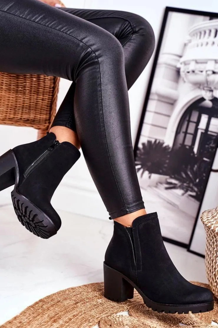 Damskie Damskie buty S.Barski Botki Damskie Na Słupku Ciepłe Czarne Veronica