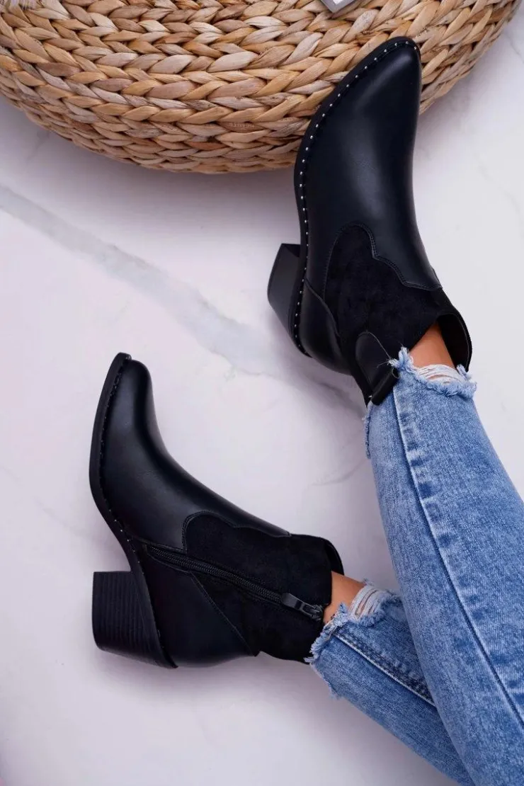 Damskie Damskie buty S.Barski Damskie Botki Kowbojki Czarne Barski 30-20