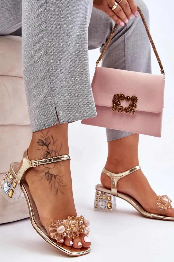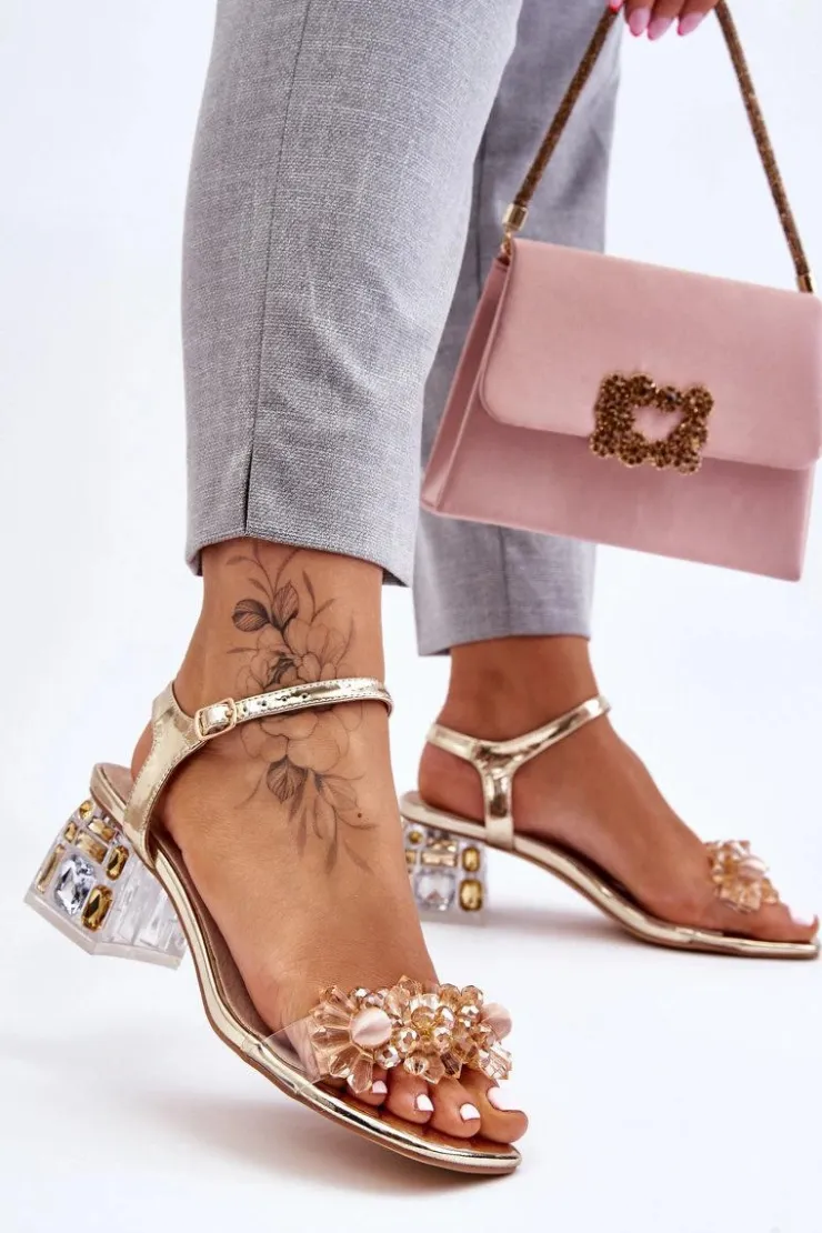 Eleganckie sandały osadzone na niskim obcasie w postaci klocka. Buty posiadają ozdoby na paseczkach w formie koralików. Zapinane wokół kostki na regulowany pasek ze sprzączką. Miękka wkładka z naturalnej skóry zadba o Twój komfort. Sandałki świetnie sprawdzą się na różnego rodzaju uroczystościach czy spotkaniach. Przy wyborze rozmiaru prosimy sugerować się tabelą rozmiarów.