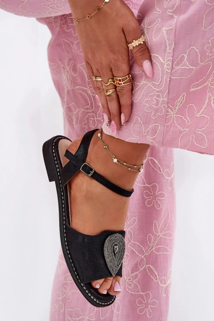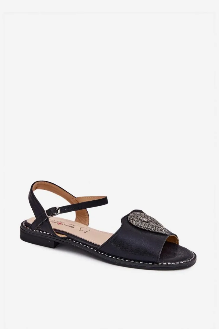 Te damskie sandały z eko skóry to świetny wybór na gorące dni. Zapewniają komfort i stabilność dzięki płaskiemu obcasowi. Przód zdobi ozdobny detal, który dodaje im subtelnego uroku. Wkładka z naturalnej skóry sprawia, że każdy krok jest wygodny. Regulowany pasek z zapinaniem na sprzączkę pozwala na idealne dopasowanie do stopy. Model ten doskonale pasuje do wielu letnich stylizacji, od casualowych po bardziej eleganckie. Przy wyborze rozmiaru prosimy kierować się tabelą rozmiarów.