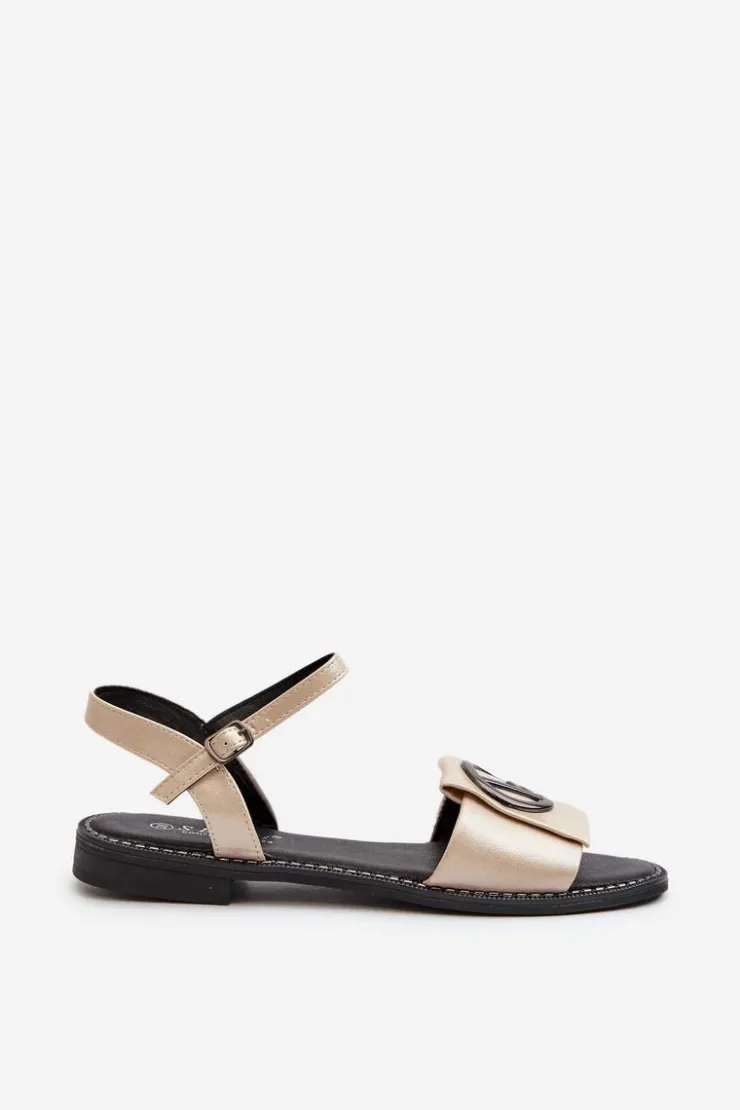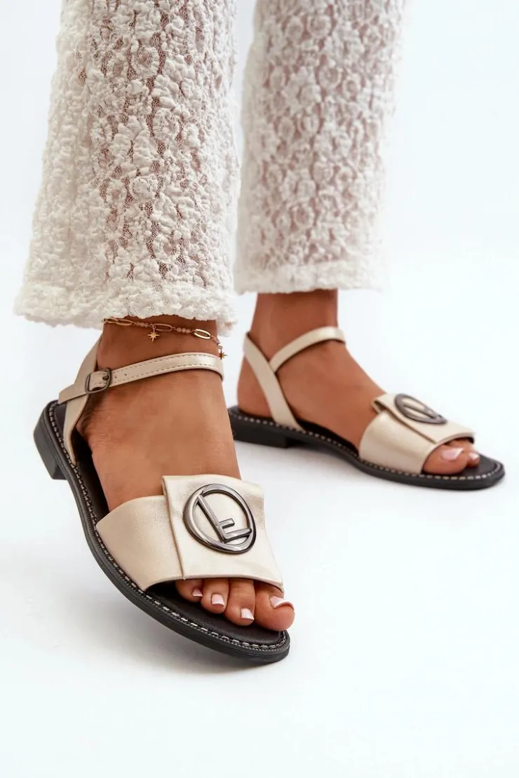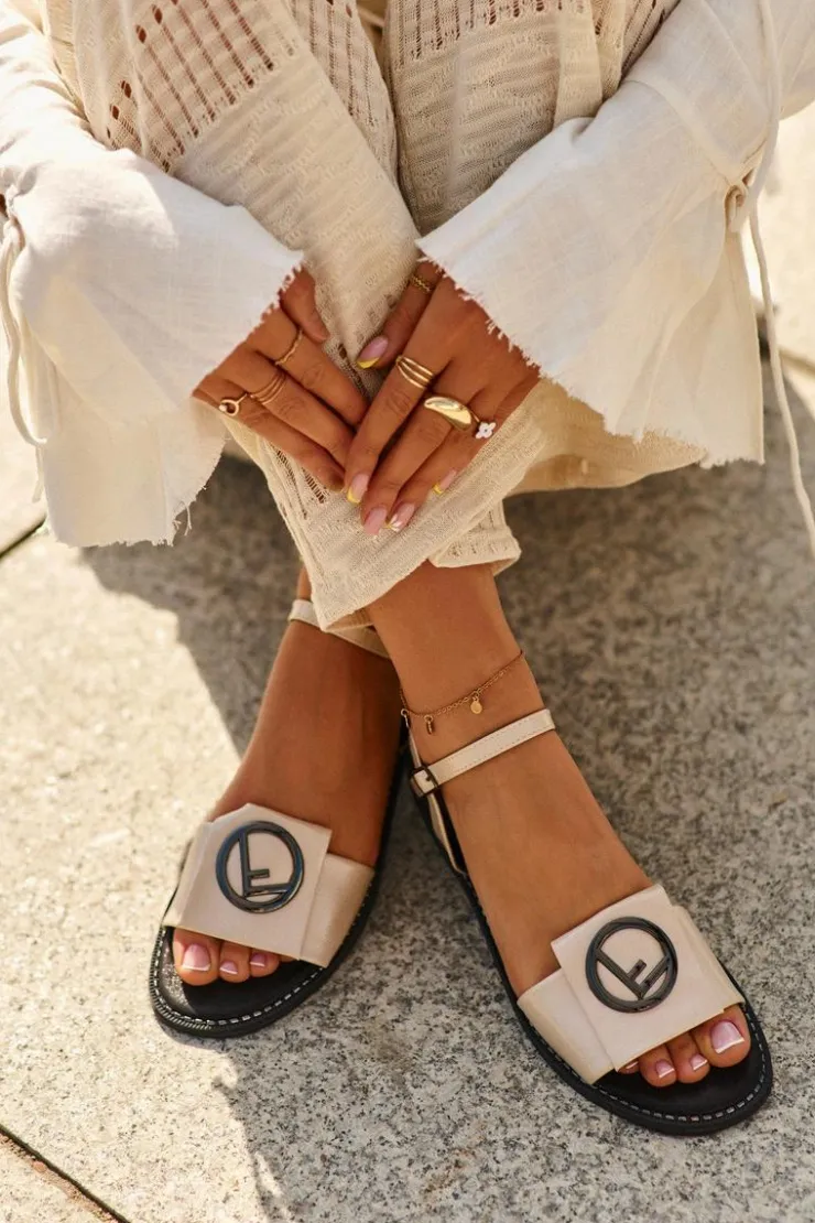 Eleganckie, płaskie sandały damskie z ozdobnymi detalami. Zapinane na regulowany pasek ze sprzączką, zapewniają idealne dopasowanie. Stylowy design i wygoda sprawiają, że są doskonałym wyborem na różne okazje. Przy wyborze rozmiaru prosimy kierować się tabelą rozmiarów.