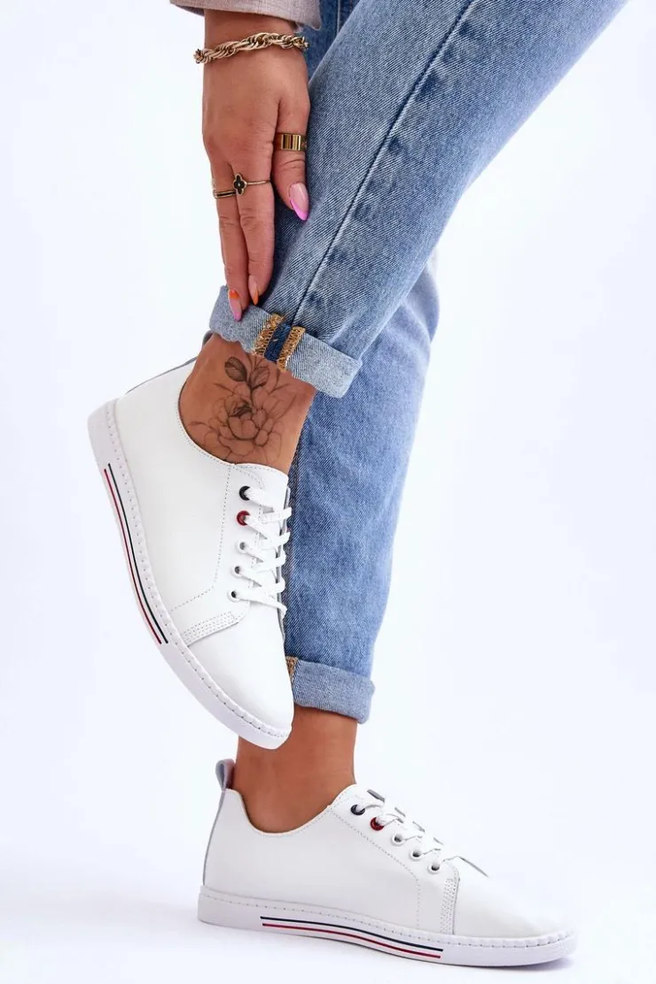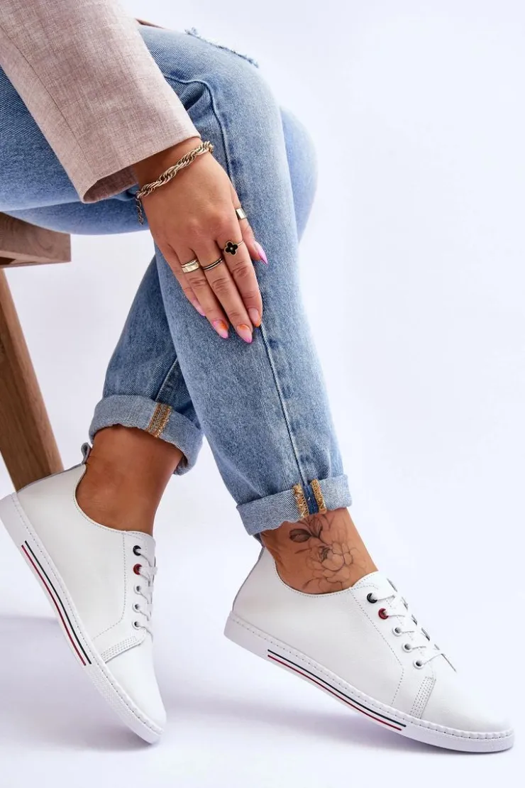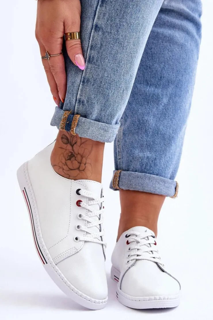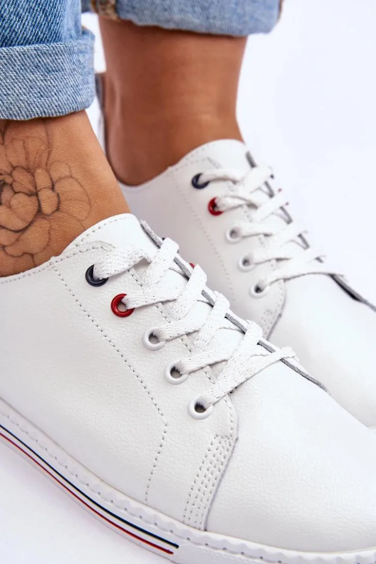 Damskie Damskie buty S.Barski Damskie Skórzane Trampki Białe S.Barski LR268R