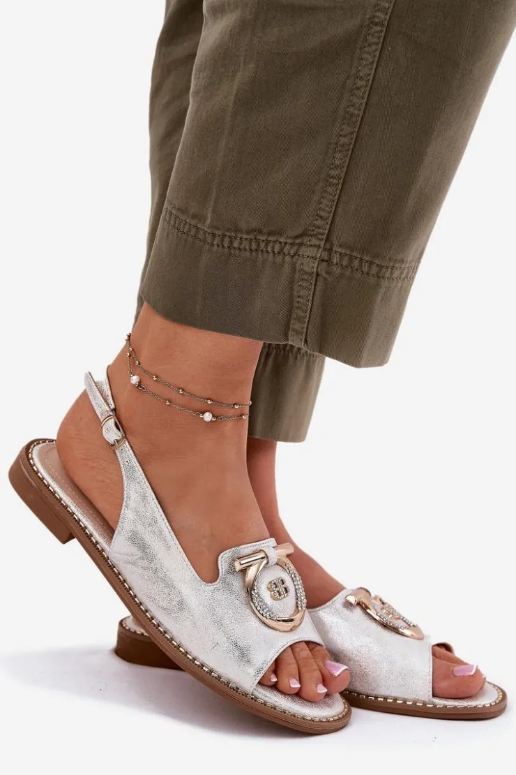 Eleganckie sandały damskie od marki S.Barski to doskonały wybór na ciepłe dni. Wykonane z eko skóry, Model osadzony jest na płaskim obcasie, co zapewnia komfort przez cały dzień. Z przodu sandałów znajduje się subtelny, ozdobny element, który dodaje im wyjątkowego charakteru. Zapinane na sprzączkę z regulowanym paskiem, umożliwiają idealne dopasowanie do stopy. Wkładka z naturalnej skóry gwarantuje wygodę i oddychalność, co sprawia, że sandały są idealne podczas dłuższego użytkowania. Przy wyborze rozmiaru prosimy kierować się tabelą rozmiarów.