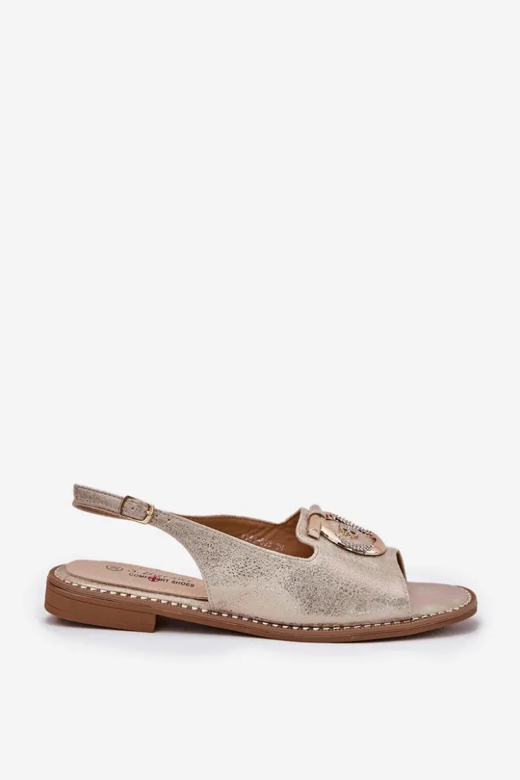 Damskie Damskie buty S.Barski Eleganckie Sandały Z Ozdobą Na Płaskim Obcasie S.Barski KV51-003 Złote