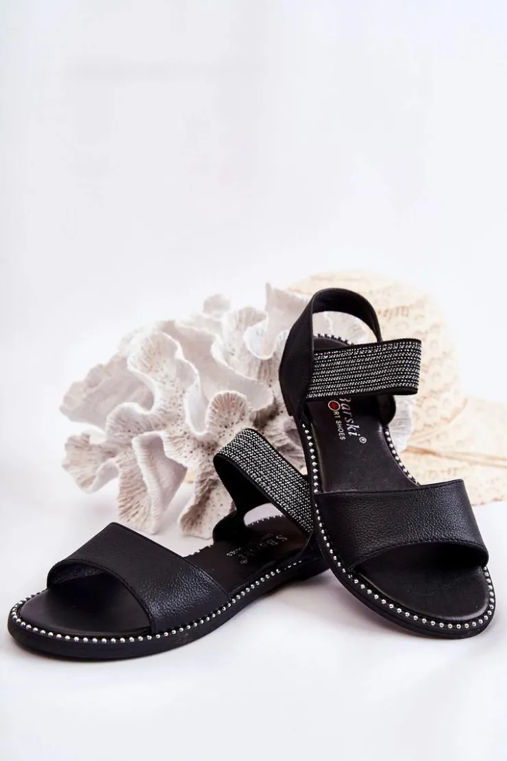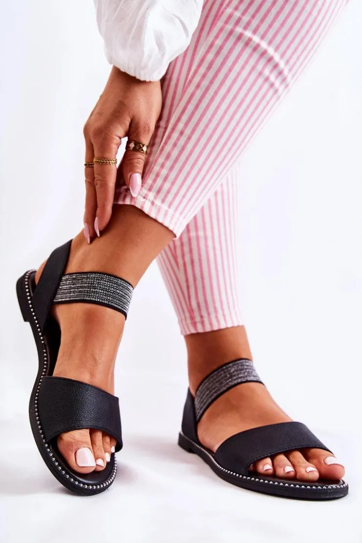 Klasyczne sandały damskie oraz dziewczęce wykonane z wysokiej jakości eko skóry. Model wsuwany. Posiadają elastyczną gumkę podtrzymującą stopę przed przesuwaniem się. Wokół podeszwy znajdują się ćwieki. Miękka wkładka Comfort Shoes została wykonana z eko skóry. Podeszwa z gumowego tworzywa jest antypoślizgowa. Osadzone na delikatnym, płaskim obcasie. Fason z paskiem na zapiętku i odkrytymi palcami. Przy wyborze rozmiaru prosimy kierować się tabelą rozmiarów.