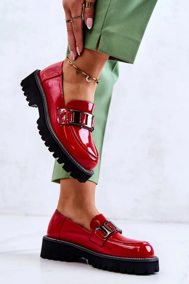 Cudne, wykonane z eko skóry półbuty w stylu loaferów! Ten fason idealnie sprawdzi się w sezonie wiosenno-jesiennym. Cholewka do kostki, z paskiem na przodzie przyozdobionym metalowym elementem. Nosek zaokrąglony. Podeszwa wykonana z tworzywa sztucznego z dużym bieżnikiem. Płaski obcas zapewni stabilność na każdym kroku. Miękka, wygodna wkładka została wykonana z naturalnej skóry. Ten model idealnie sprawdzi się zarówno w casualowych, jak i bardziej eleganckich outfitach! Przy wyborze rozmiaru prosimy sugerować się tabelą rozmiarów.