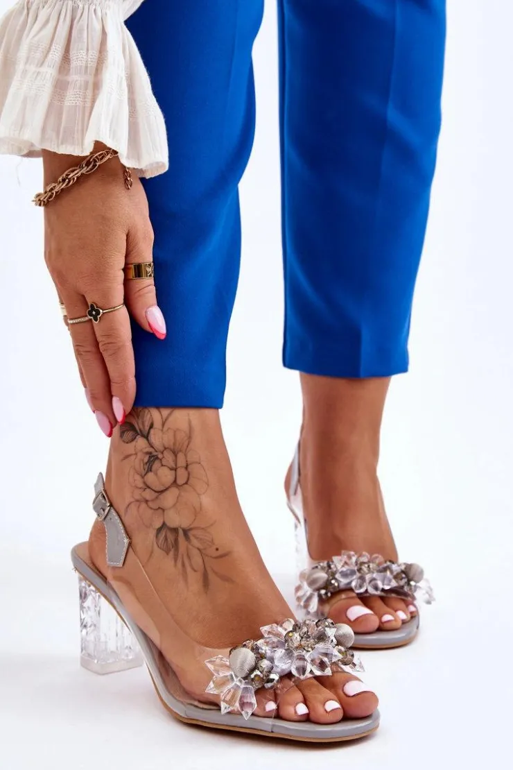 Damskie Damskie buty S.Barski Modne Sandały Z Koralikami Szare Terrance