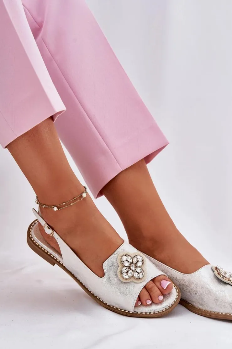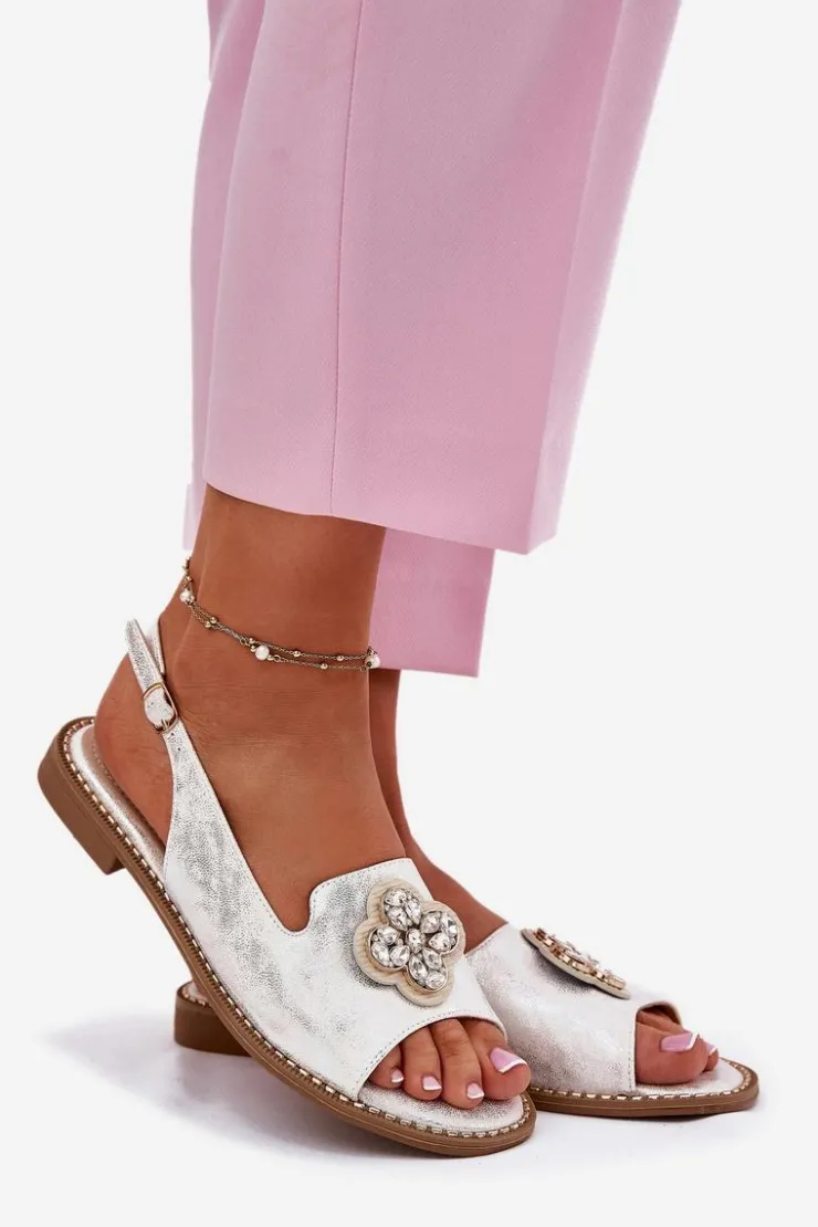 Damskie Damskie buty S.Barski Sandały Damskie Na Płaskim Obcasie Z Ozdobnym Detalem S.Barski KV51-080 Srebrne