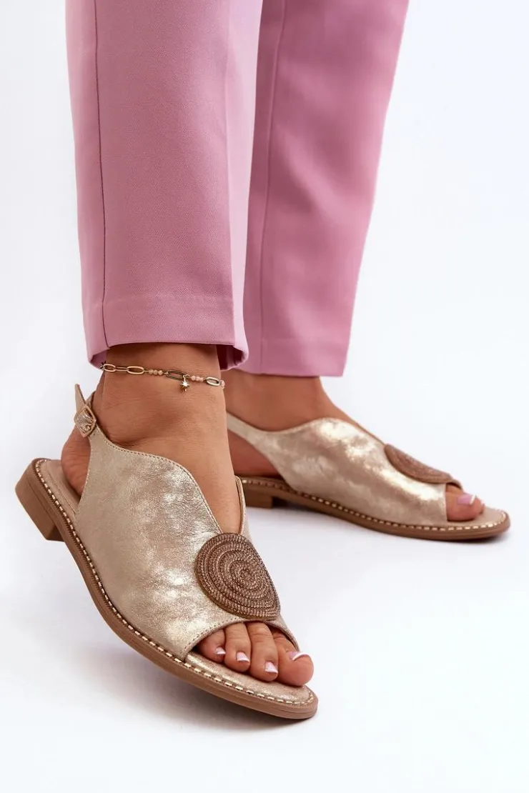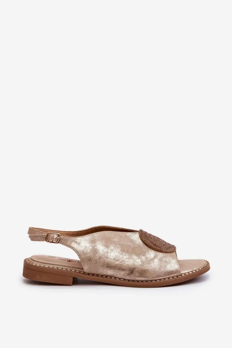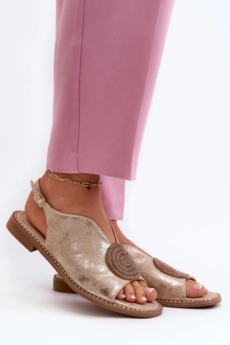 Błyszczące sandały damskie marki S.Barski to połączenie elegancji i wygody. Osadzone na płaskim obcasie. Zapinane na regulowany pasek ze sprzączką, gwarantują idealne dopasowanie do stopy. Skórzana wkładka zapewni komfort podczas użytkowania. Ozdoba dodaje wyjątkowego uroku. Idealne na letnie dni i wieczorne wyjścia! Przy wyborze rozmiaru prosimy kierować się tabelą rozmiarów.