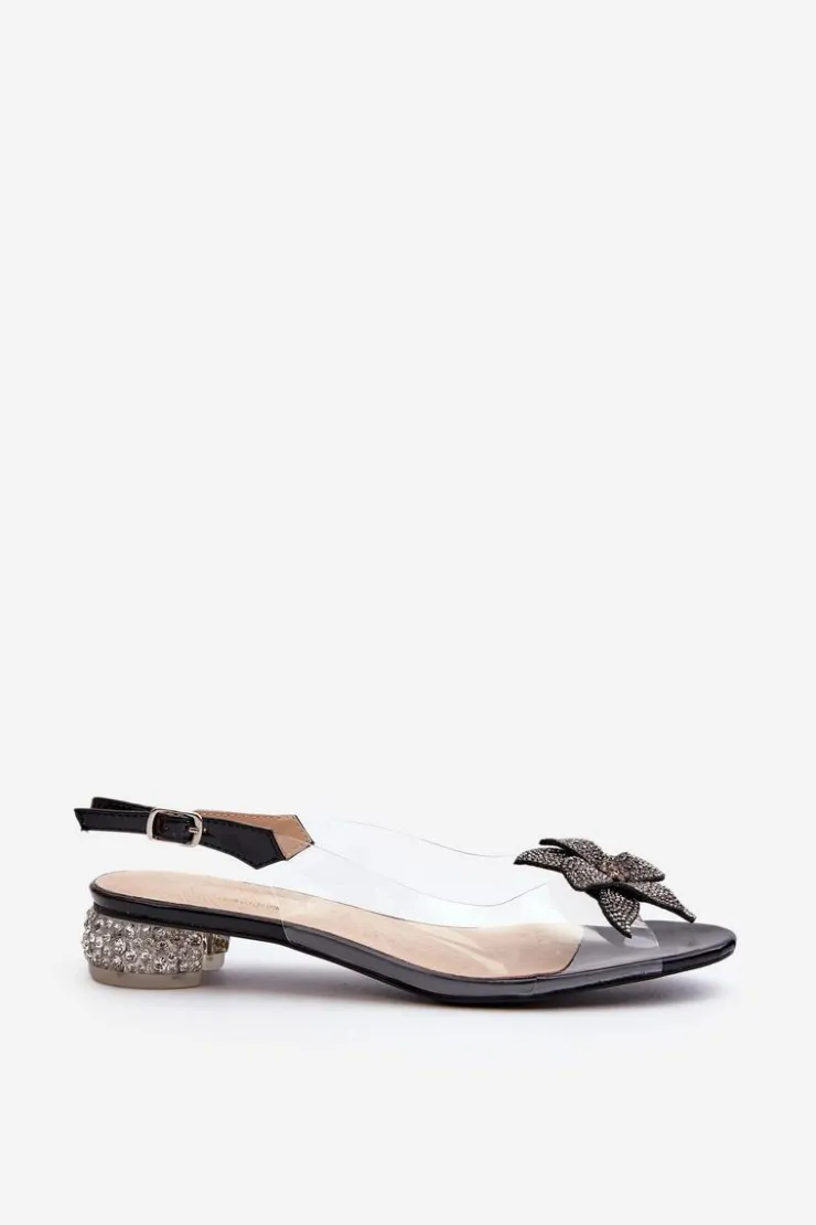 Stylowe sandały z transparentną cholewką to prawdziwy hit! Osadzone na niskim obcasie ozdobionym cyrkoniami. Zapinane na regulowany pasek ze sprzączką. Wkładka ze skóry naturalnej jest miękka i wygodna. Z przodu ozdobny kwiatek. Idealne na różne uroczystości oraz wieczorne wyjścia! Przy wyborze rozmiaru prosimy sugerować się tabelą rozmiarów.