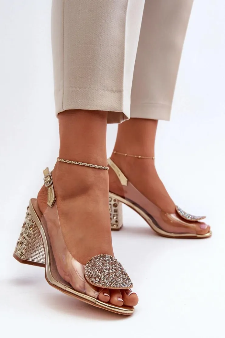 Damskie Damskie buty S.Barski Sandały Transparentne Na Słupku Złote D&A MR38-812