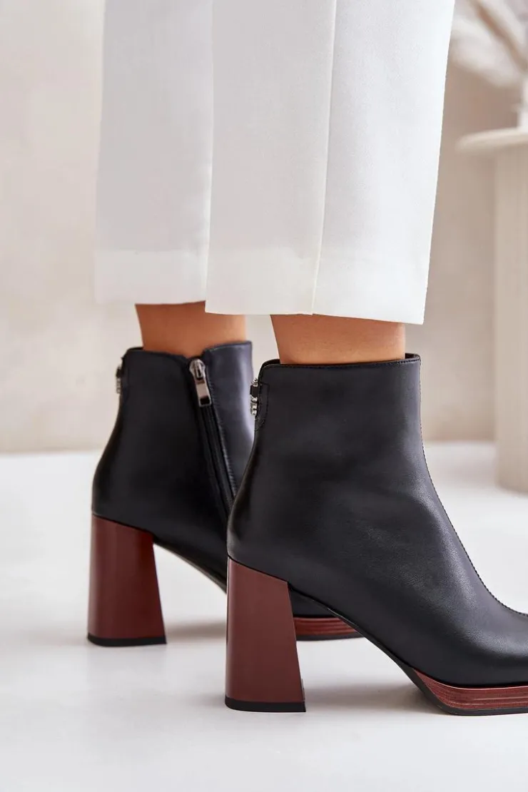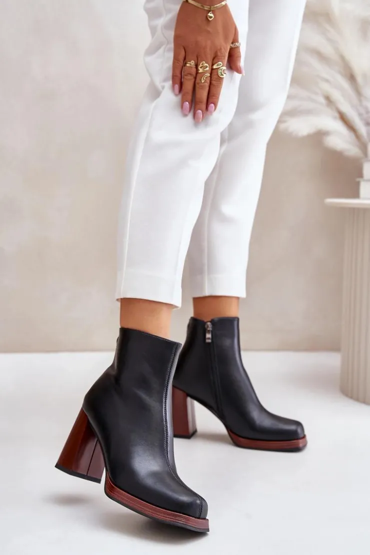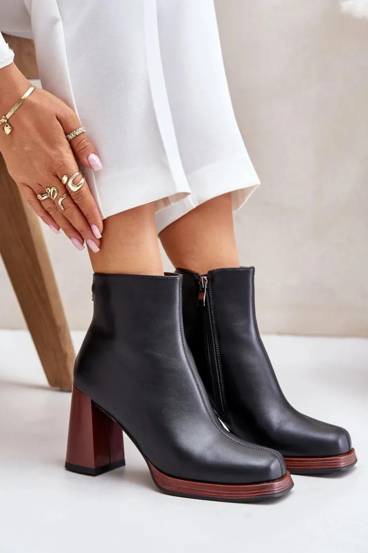 Damskie Damskie buty S.Barski Skórzane Botki Damskie Na Słupku Ocieplane D&A JC42-37 Czarne