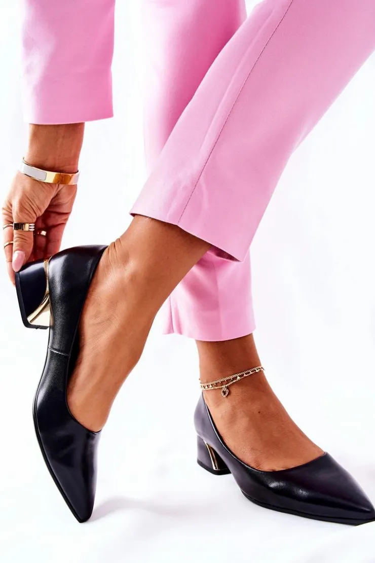 Buty zostały wykonane ze skóry ekologicznej. Posiadają wkładkę ze skóry naturalnej. Gładkie, eleganckie czółenka pasują na wiele okazji. Obcas wykończony ozdobnym elementem. Bardzo wygodny model. Dzięki stabilnemu obcasowi i miękkiej wkładce są bardzo komfortowe w noszeniu przez wiele godzin. Przy wyborze rozmiaru prosimy sugerować się tabelą rozmiarów.