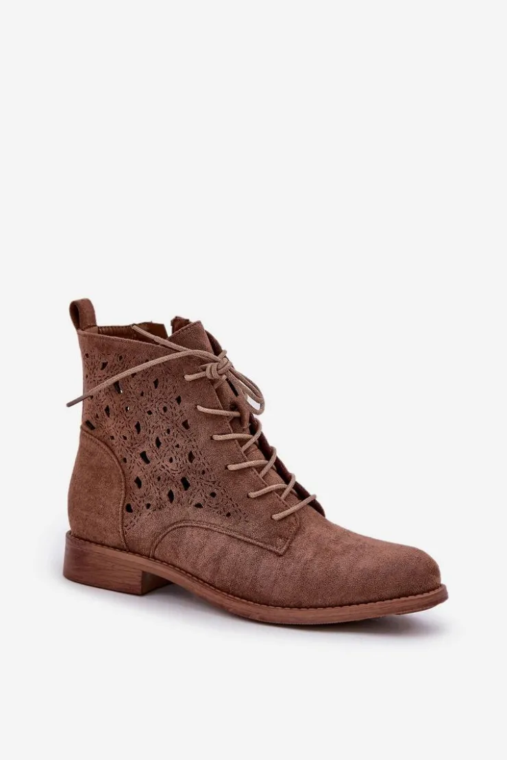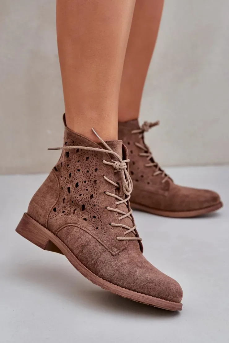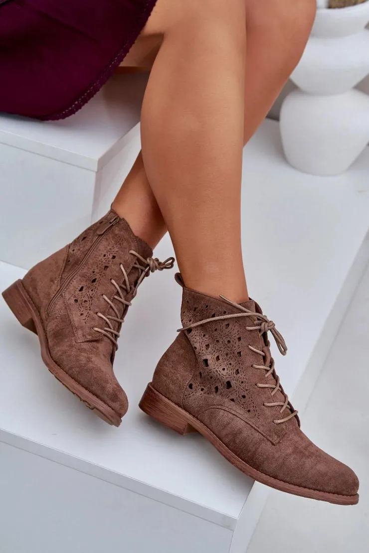 Botki damskie na płaskim obcasie od marki S.Barski to elegancka propozycja, która łączy wygodę z nowoczesnym stylem. Wykonane z wysokiej jakości eko zamszu. Sznurowane oraz zapinane na zamek, co pozwala na łatwe zakładanie i idealne dopasowanie do stopy. Ażurowy wzorek na cholewce nadaje subtelnego charakteru, wprowadzając świeży i kobiecy akcent. Dzięki płaskiemu obcasowi te botki są wygodne do noszenia przez cały dzień, doskonale sprawdzając się w codziennych stylizacjach. Idealne na wiosnę lub jesień, stanowią świetne uzupełnienie casualowych oraz eleganckich outfitów, łącząc funkcjonalność z modnym wyglądem. Przy wyborze rozmiaru prosimy sugerować się poniższą tabelą rozmiarów.