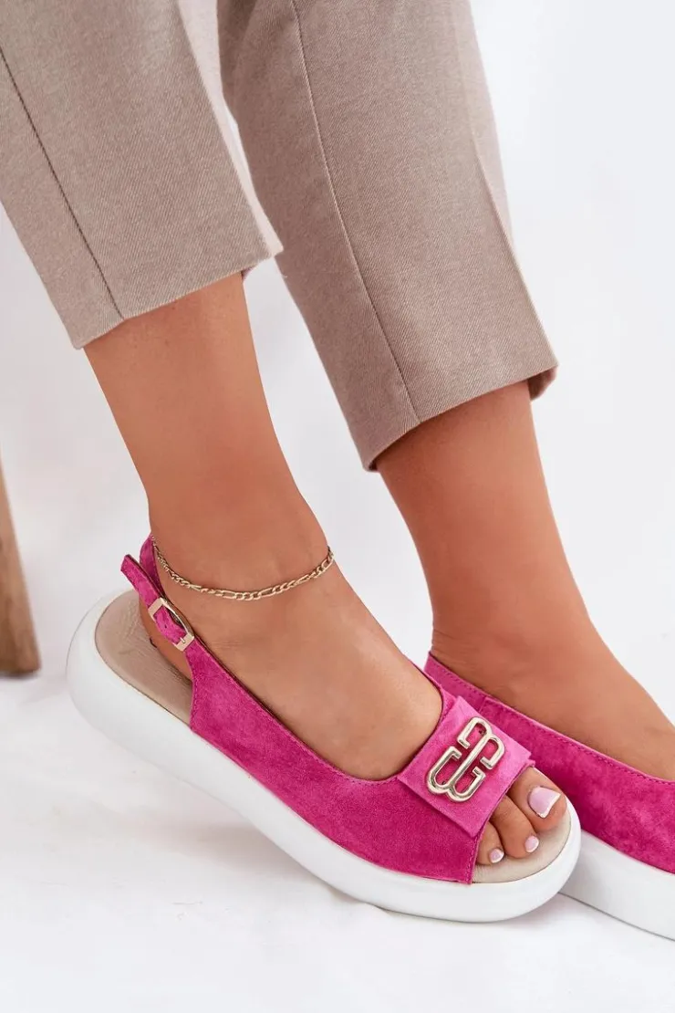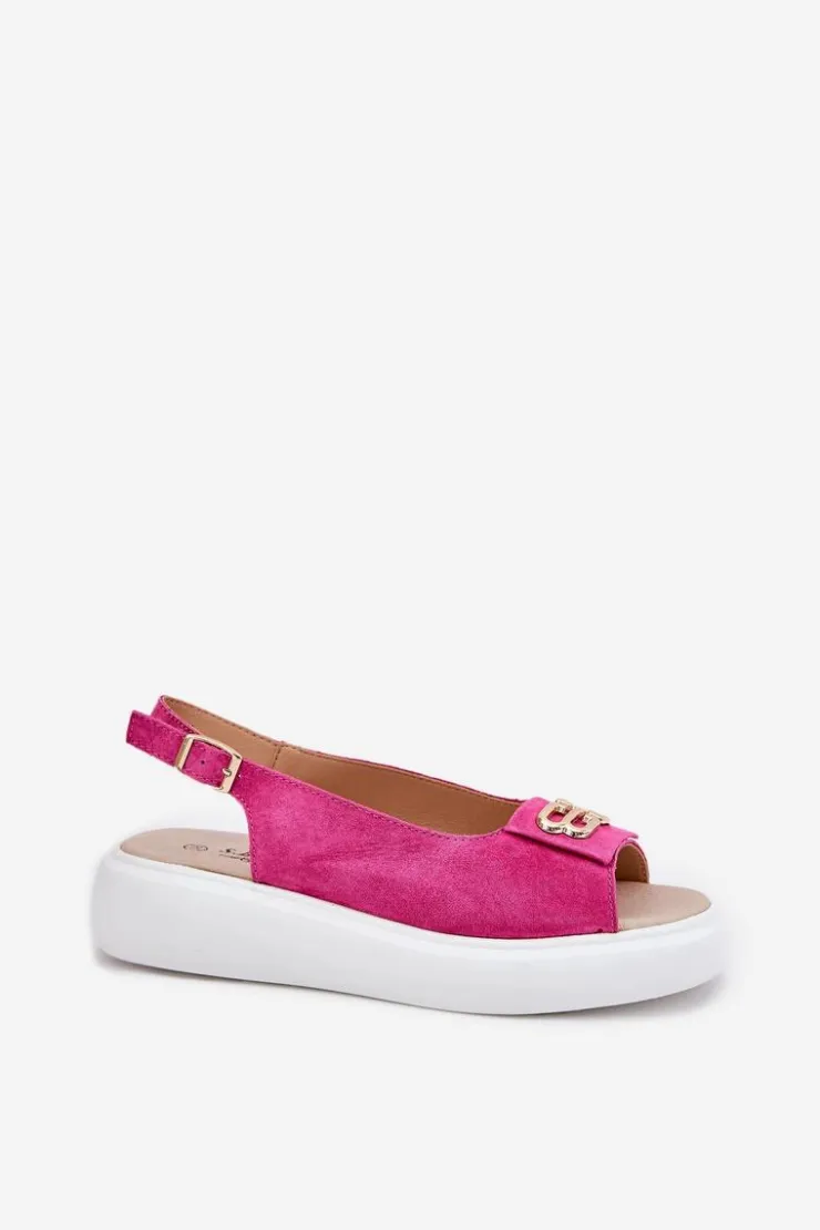 Damskie sandały z naturalnego zamszu to elegancka propozycja na letnie dni. Z przodu sandałów znajduje się subtelny złoty detal, który dodaje im wyjątkowego uroku i elegancji. Osadzone na platformie, zapewniają stabilność i komfort przez cały dzień. Skórzana wkładka gwarantuje wygodę, sprawiając, że te sandały będą doskonałym uzupełnieniem zarówno codziennych, jak i bardziej eleganckich stylizacji. Idealne na letnie wyjścia i specjalne okazje. Przy wyborze rozmiaru prosimy kierować się tabelą rozmiarów.