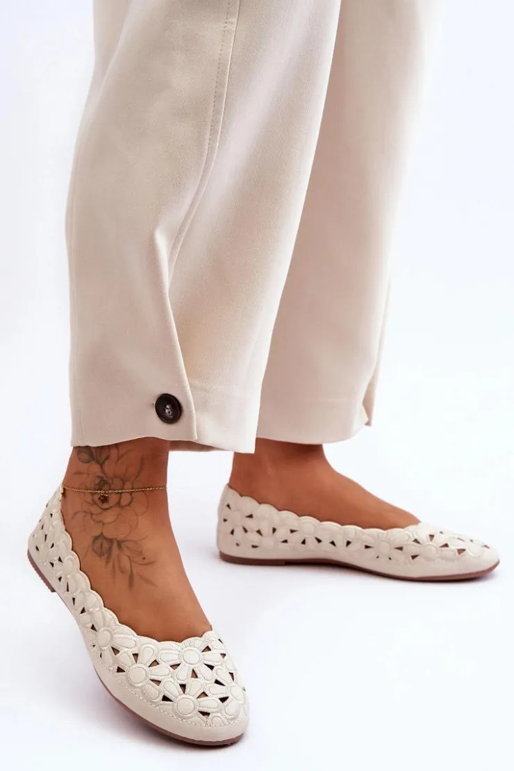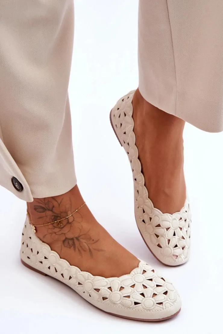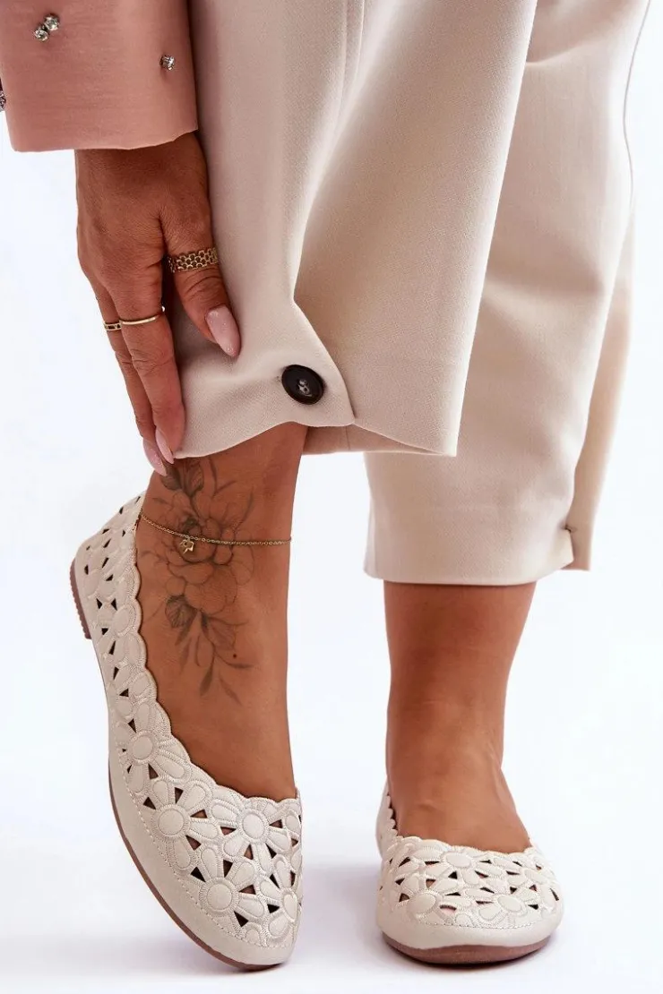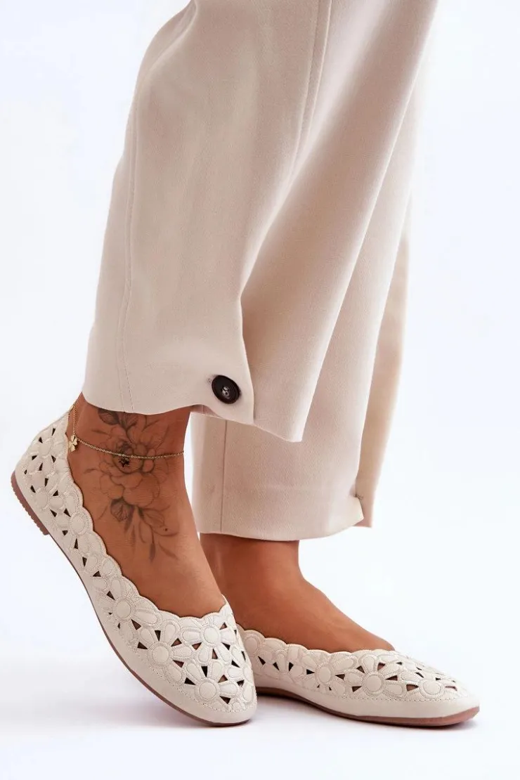Damskie Evento Ażurowe Błyszczące Baleriny Damskie Beżowe Visionary