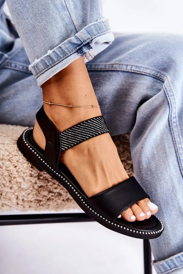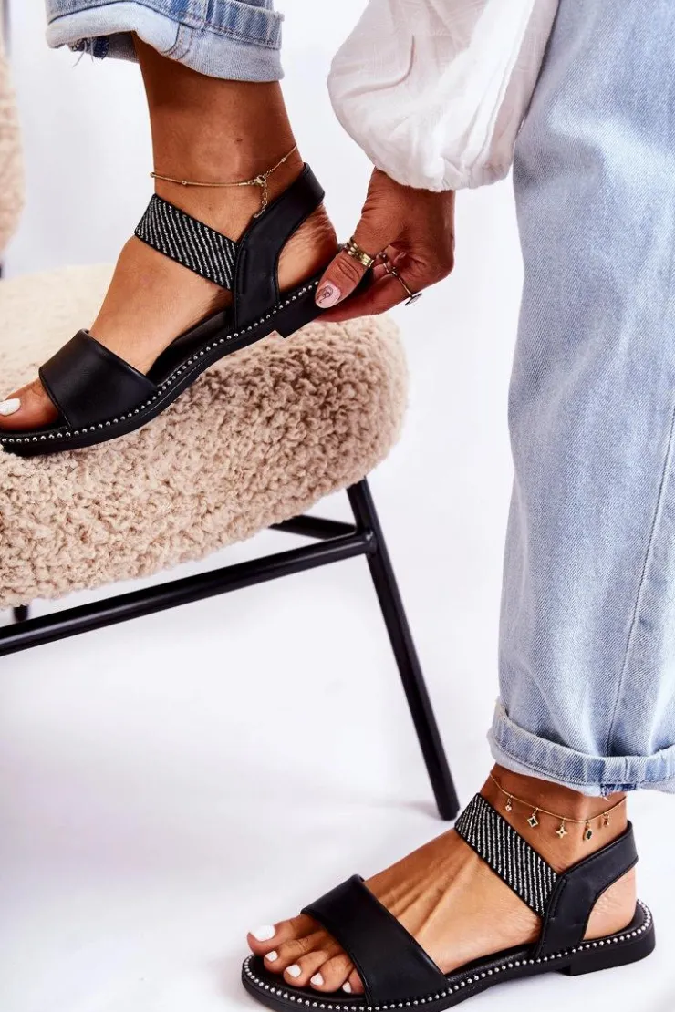 Damskie Evento Damskie Klasyczne Sandały Na Płaskim Obcasie Czarne Catis
