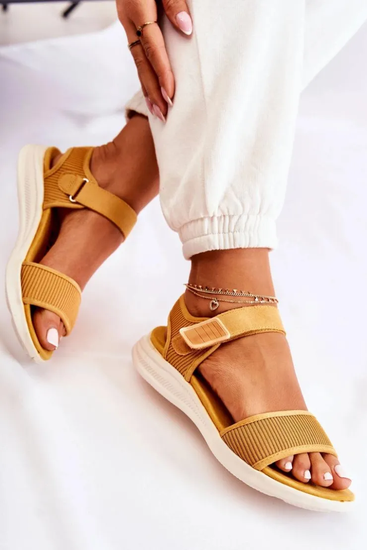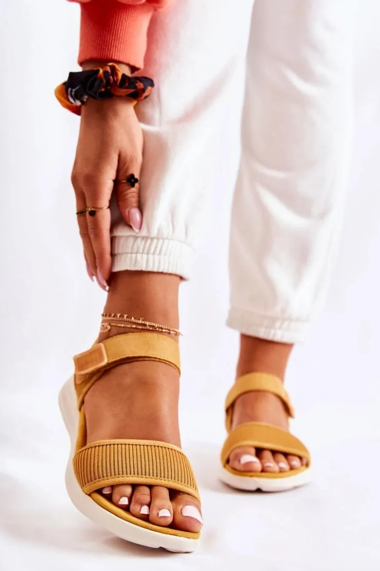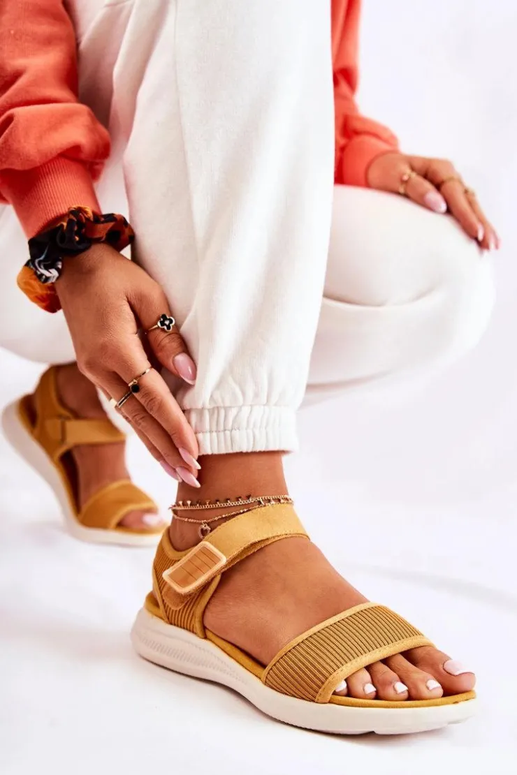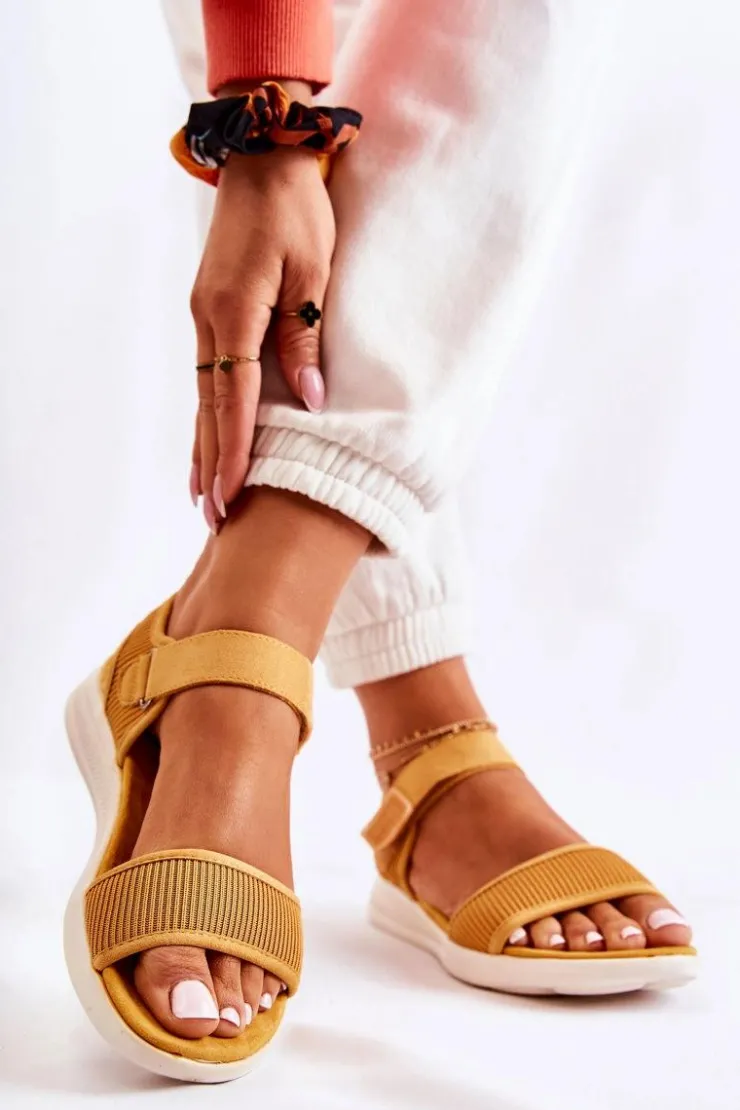 Damskie Evento Damskie Wygodne Sandały Na Rzep Żółte Sidney