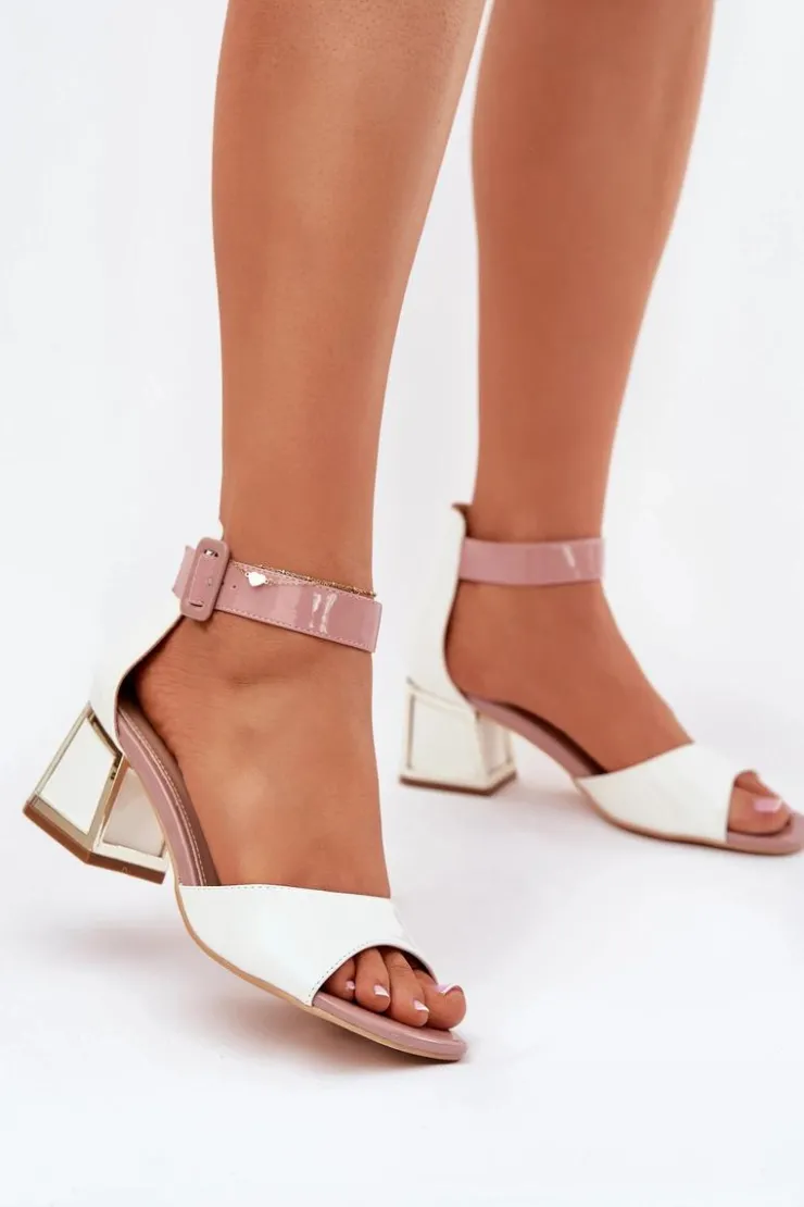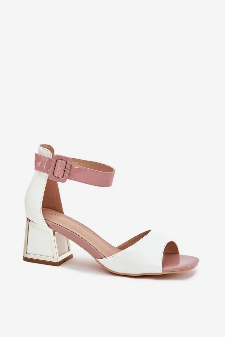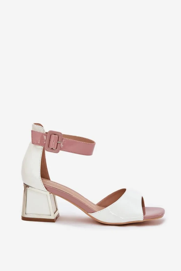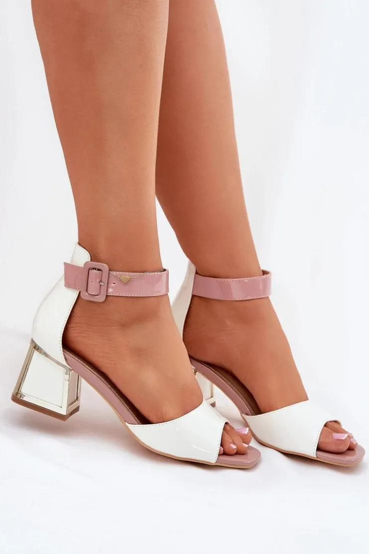 Damskie Evento Lakierowane Sandały Damskie Na Słupku Białe Zennia