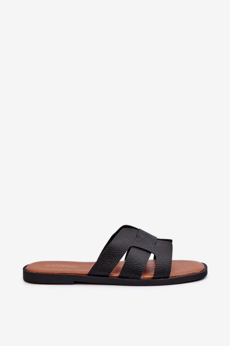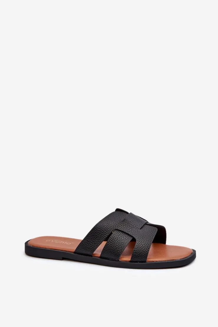 Damskie Evento Płaskie Klapki Damskie Z Eko Skóry Czarne Risamay