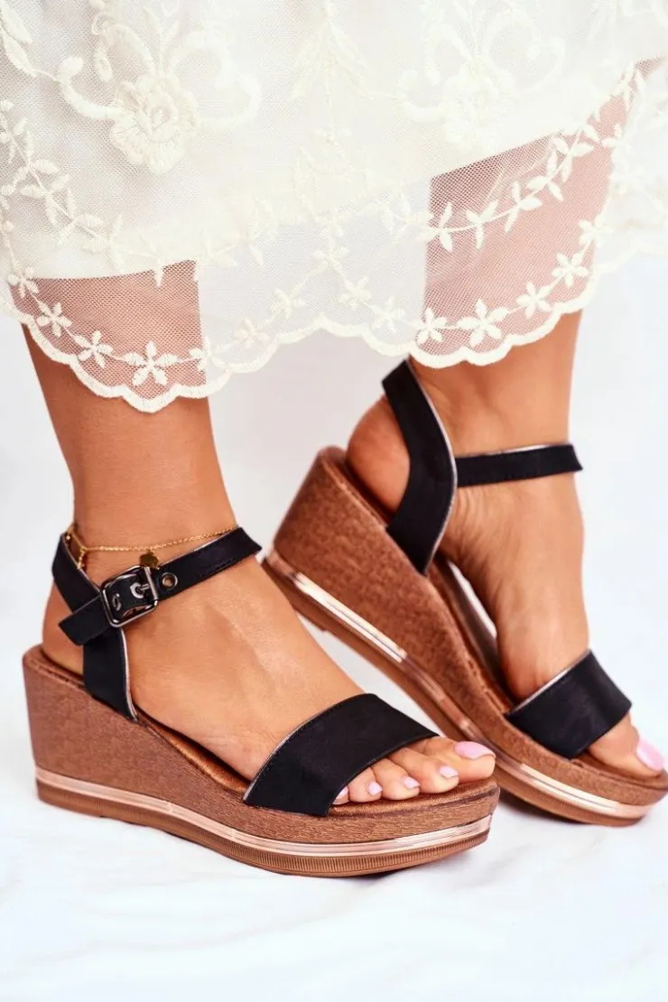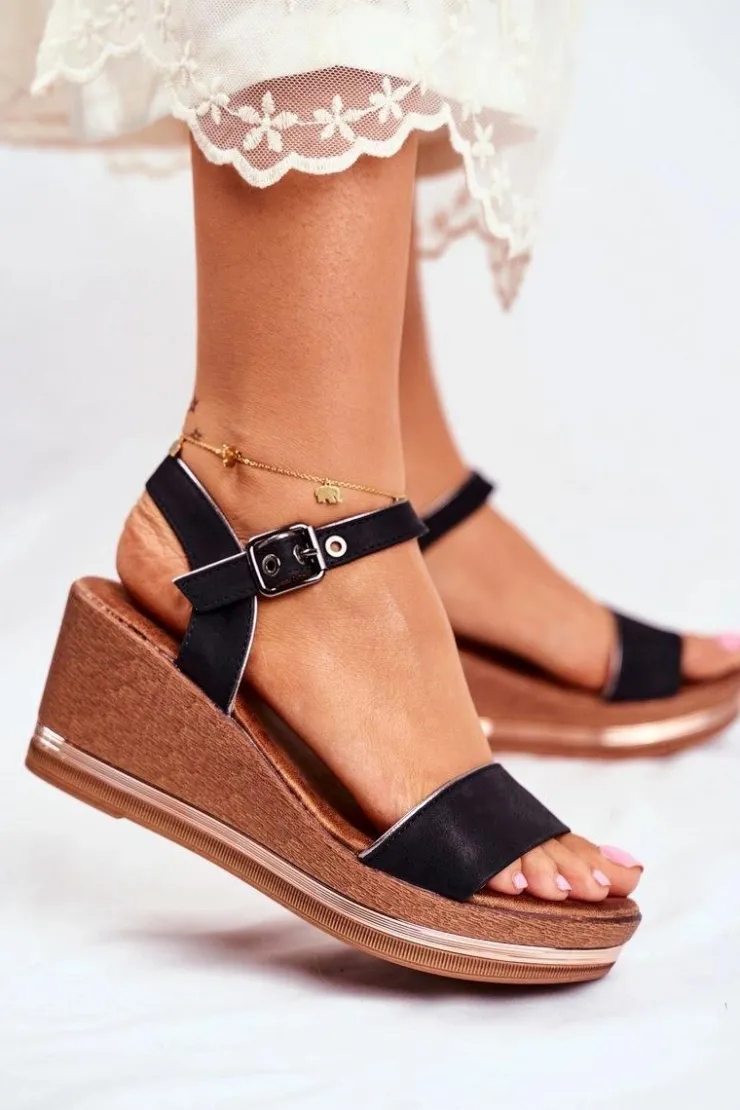 Damskie Evento Sandały Damskie Na Koturnie Czarne Monroe