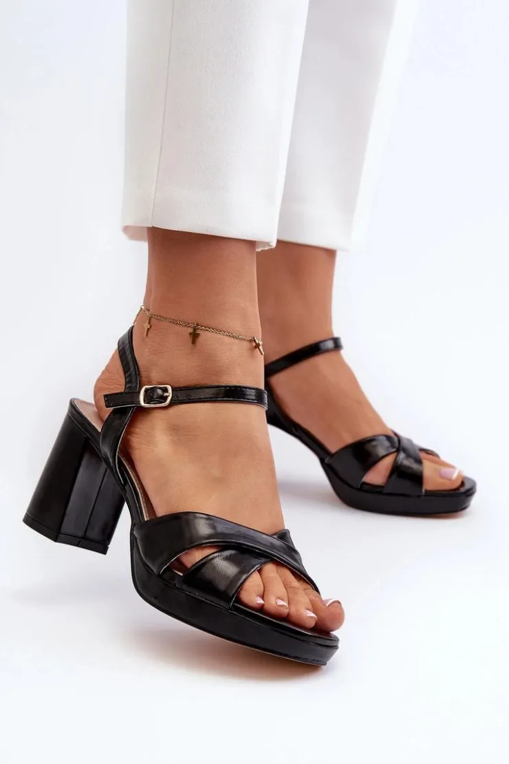Eleganckie sandały damskie z obcasem w postaci słupka prezentują się niezwykle stylowo i kobieco. Wykonane z wysokiej jakości eko skóry, zapewniają trwałość i komfort noszenia. Dodatkowo skórzana wkładka gwarantuje miękkość i dopasowanie do stopy, co sprawia, że każdy krok jest przyjemny. Te sandały to doskonały wybór na letnie wieczory czy specjalne okazje! Przy wyborze rozmiaru prosimy sugerować się tabelą rozmiarów.