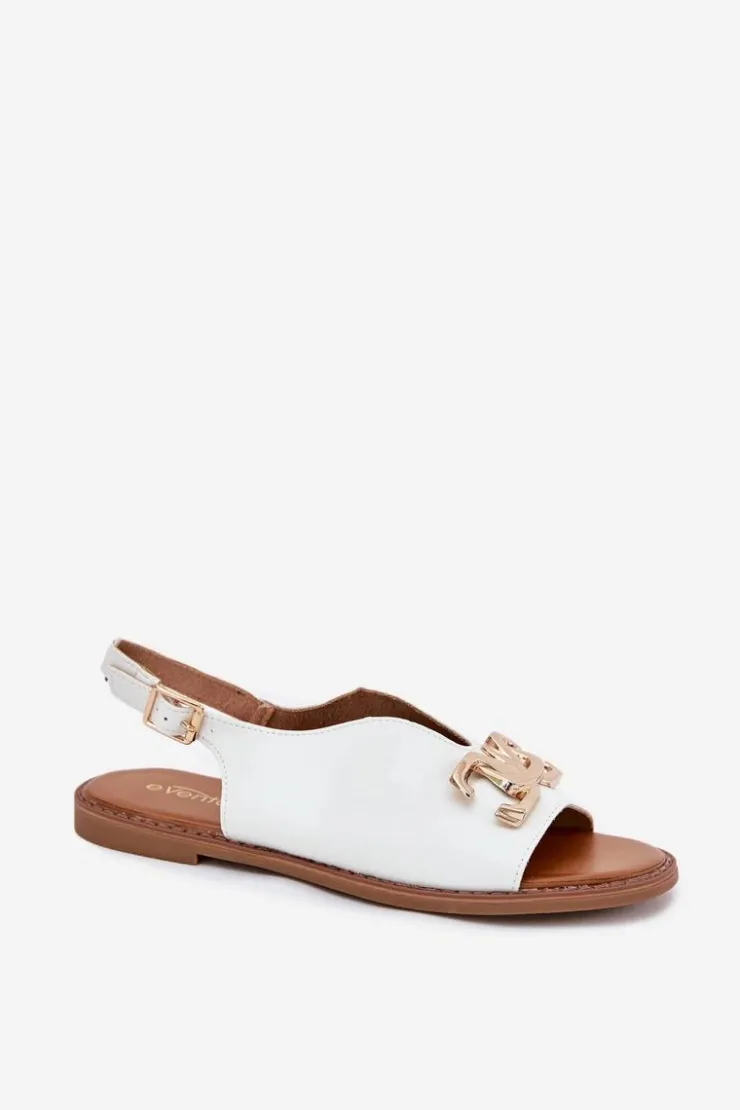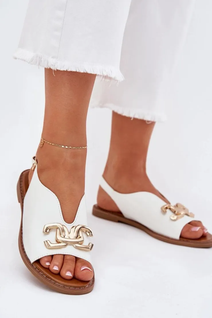 Sandały damskie z eko skóry na płaskim obcasie to doskonała propozycja na ciepłe dni. Model wyróżnia się złotą ozdobą, która dodaje im wyjątkowego uroku. Zapinane na klamrę z regulowanym paskiem, zapewniają idealne dopasowanie do stopy. Doskonałe do letnich sukienek, spódnic i spodni. Przy wyborze rozmiaru prosimy kierować się tabelą rozmiarów.