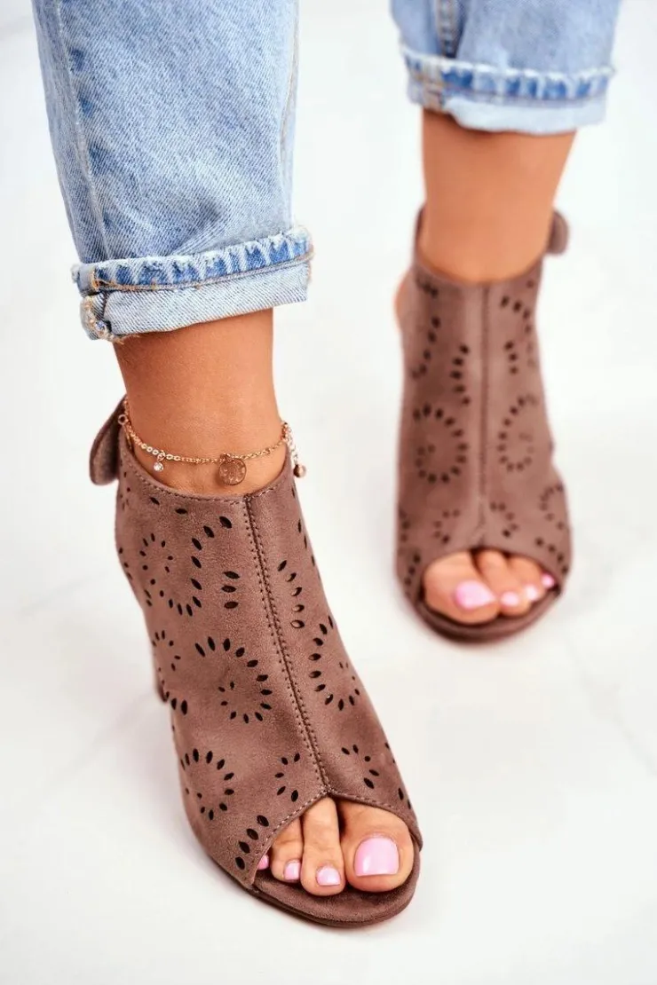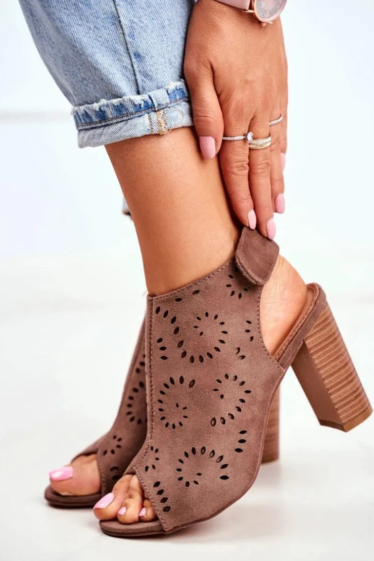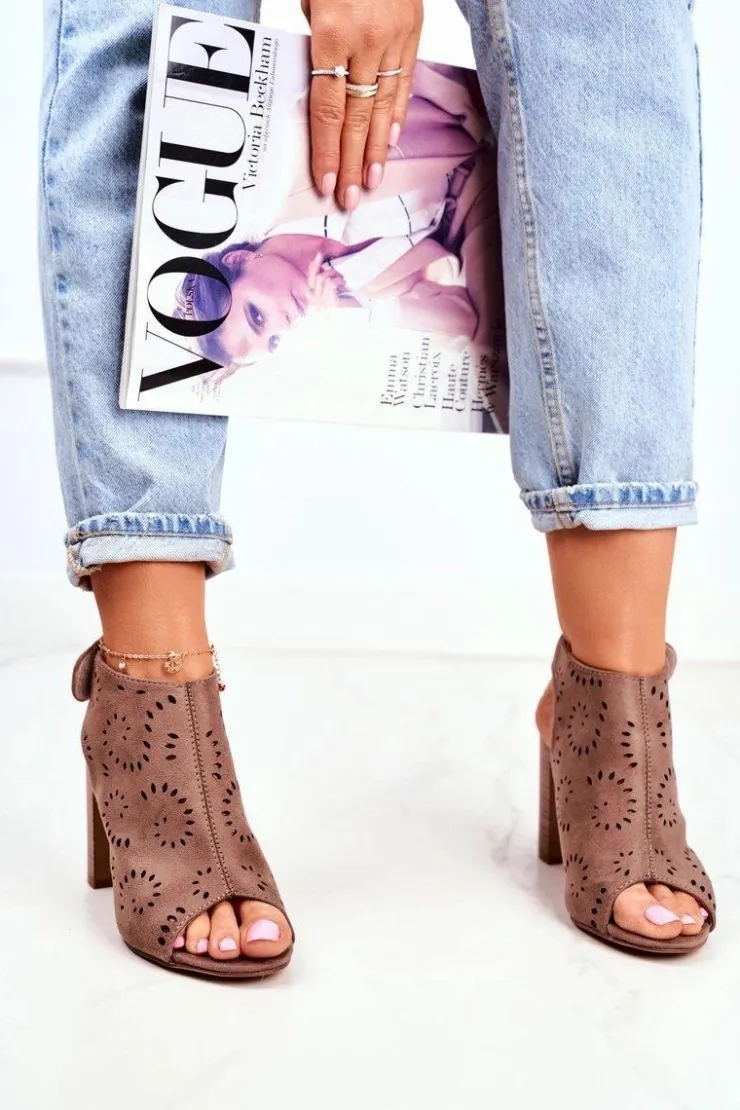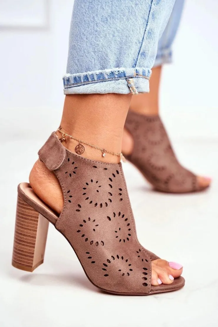 Damskie Evento Sandały Damskie Na Słupku Ażurowe Na Rzep Khaki Rules