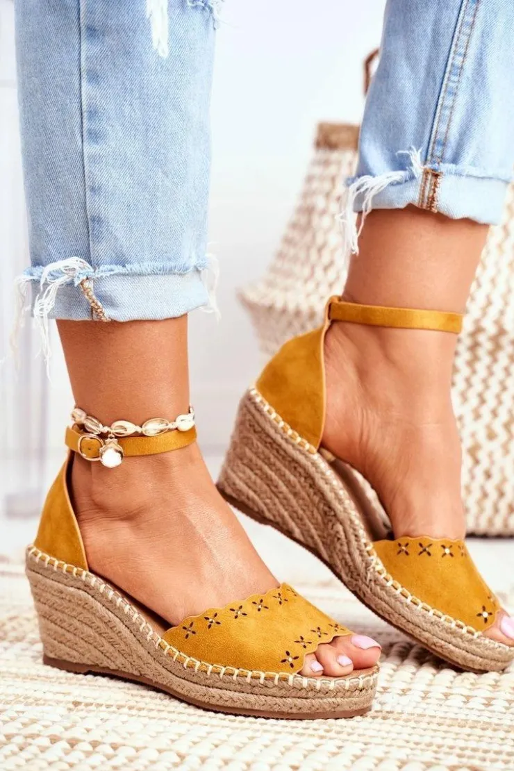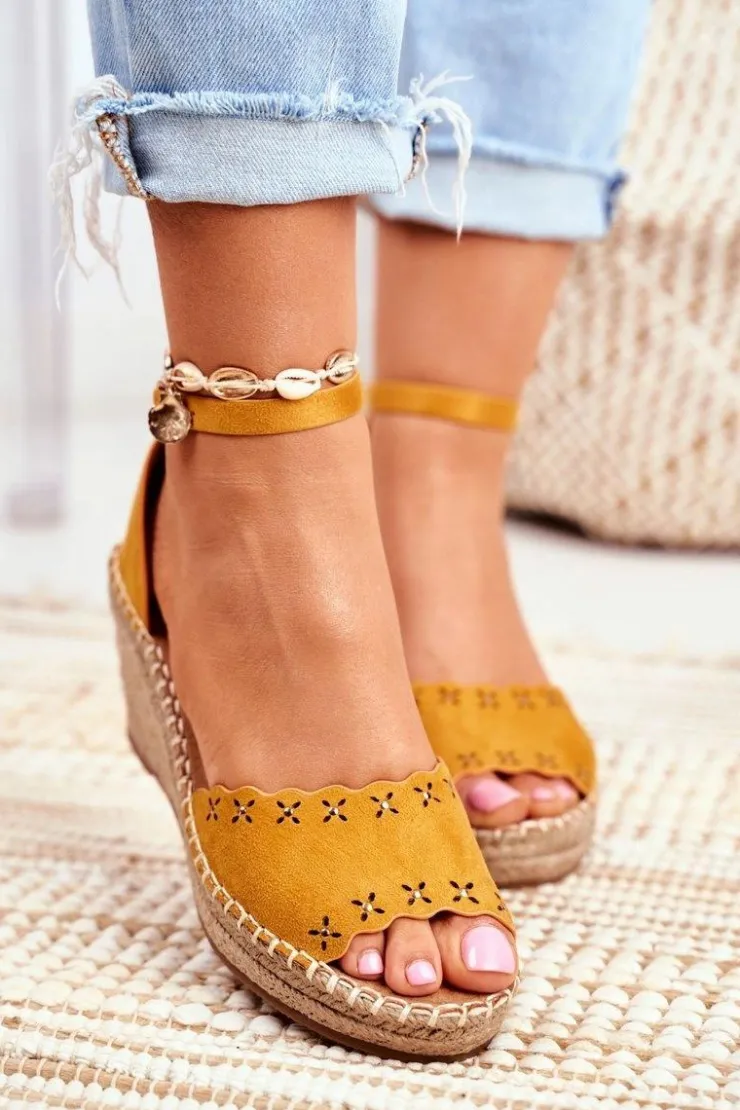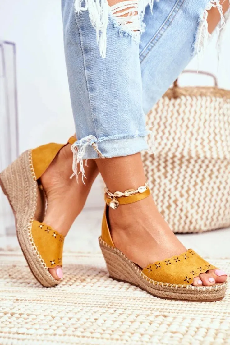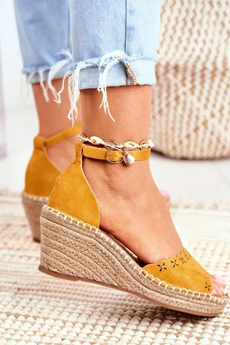 Damskie Evento Sandały Na Plecionej Koturnie Żółte Sagittarius
