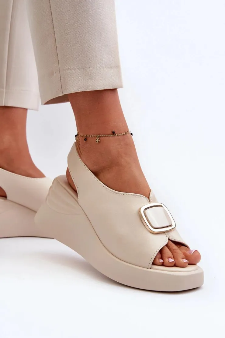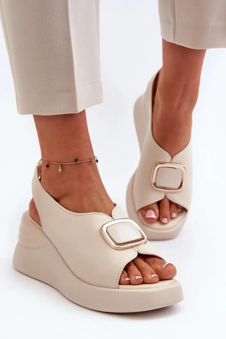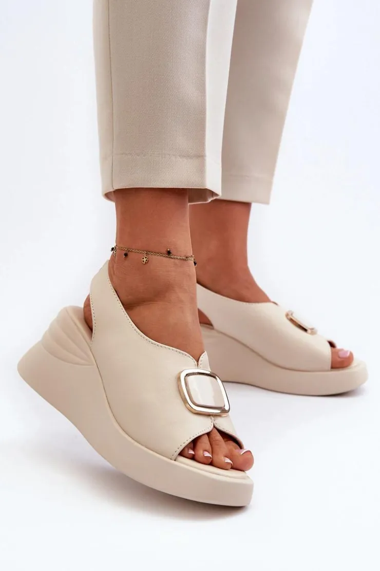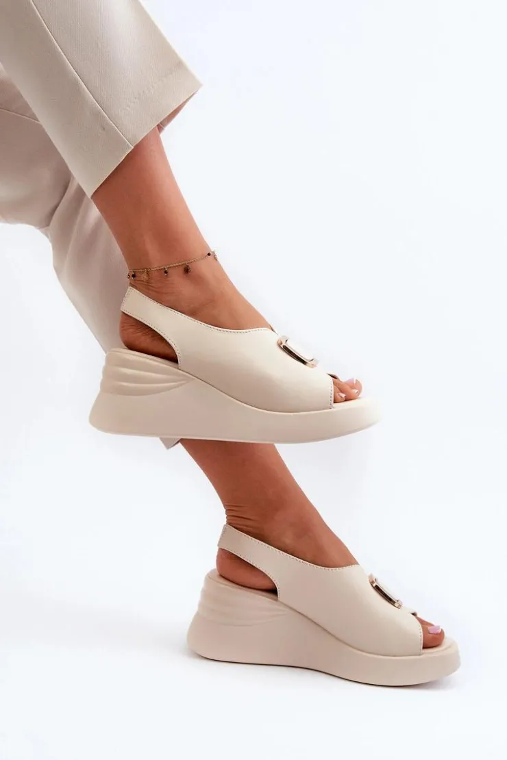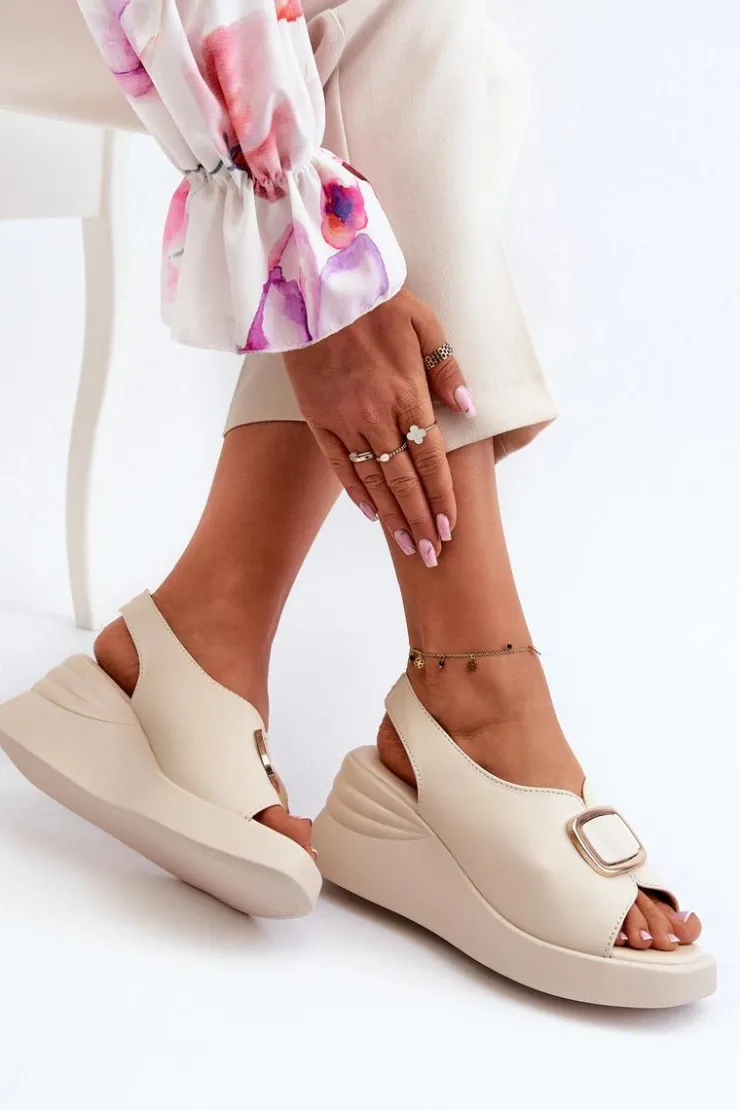 Modne sandały damskie na koturnie to połączenie stylu i wygody. Wykonane ze skóry naturalnej, prezentują elegancki wygląd, który doskonale komponuje się z różnymi letnimi stylizacjami. Z tyłu znajduje się gumka, która zapewnia lepsze dopasowanie do stopy i dodatkowy komfort podczas noszenia. To idealny wybór dla kobiet ceniących zarówno modny design, jak i wygodę. Przy wyborze rozmiaru prosimy sugerować się tabelą rozmiarów.