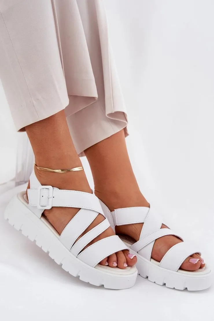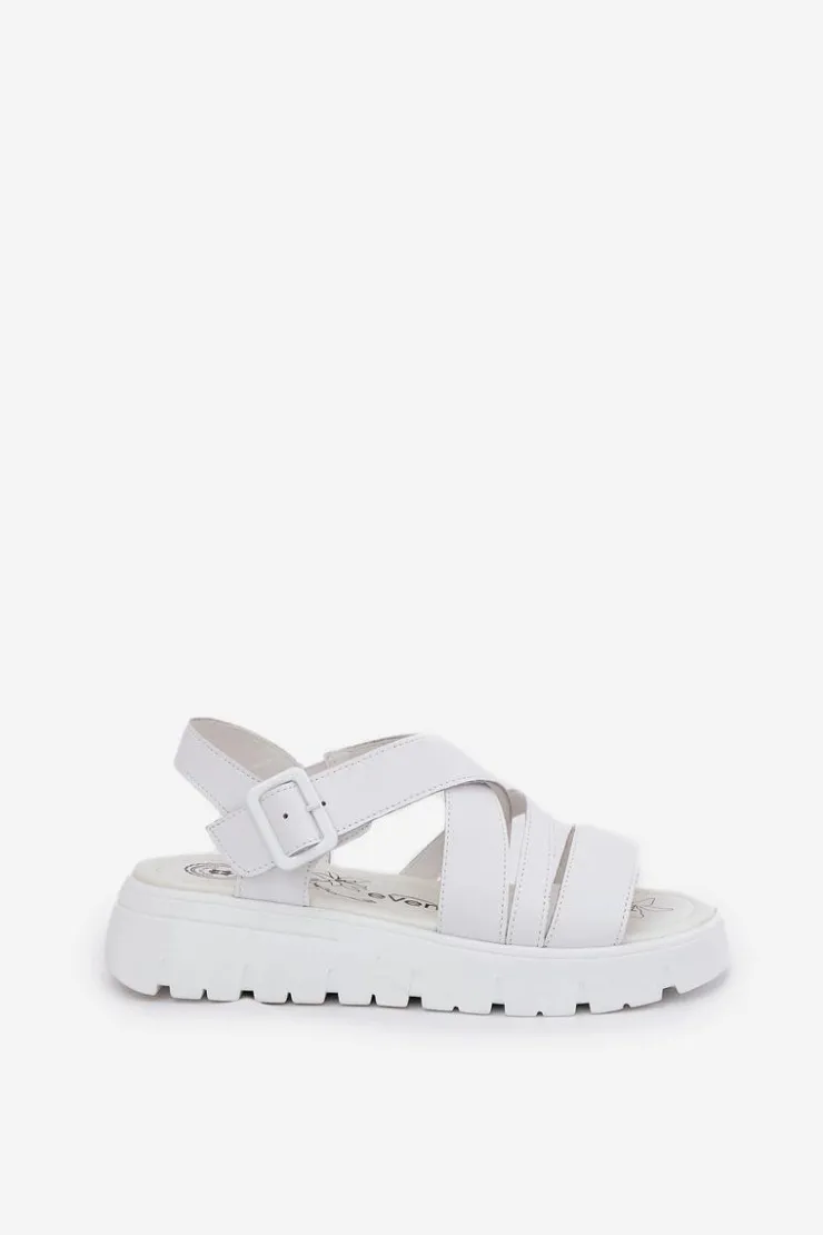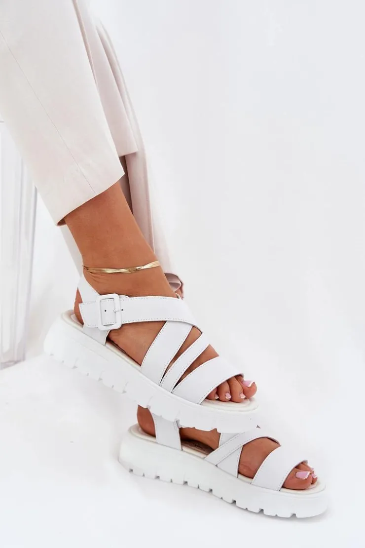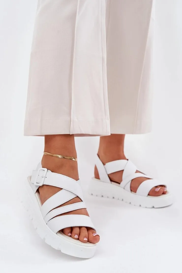 Damskie Evento Skórzane Sandały Damskie Na Platformie Z Klamrą Białe Selianae