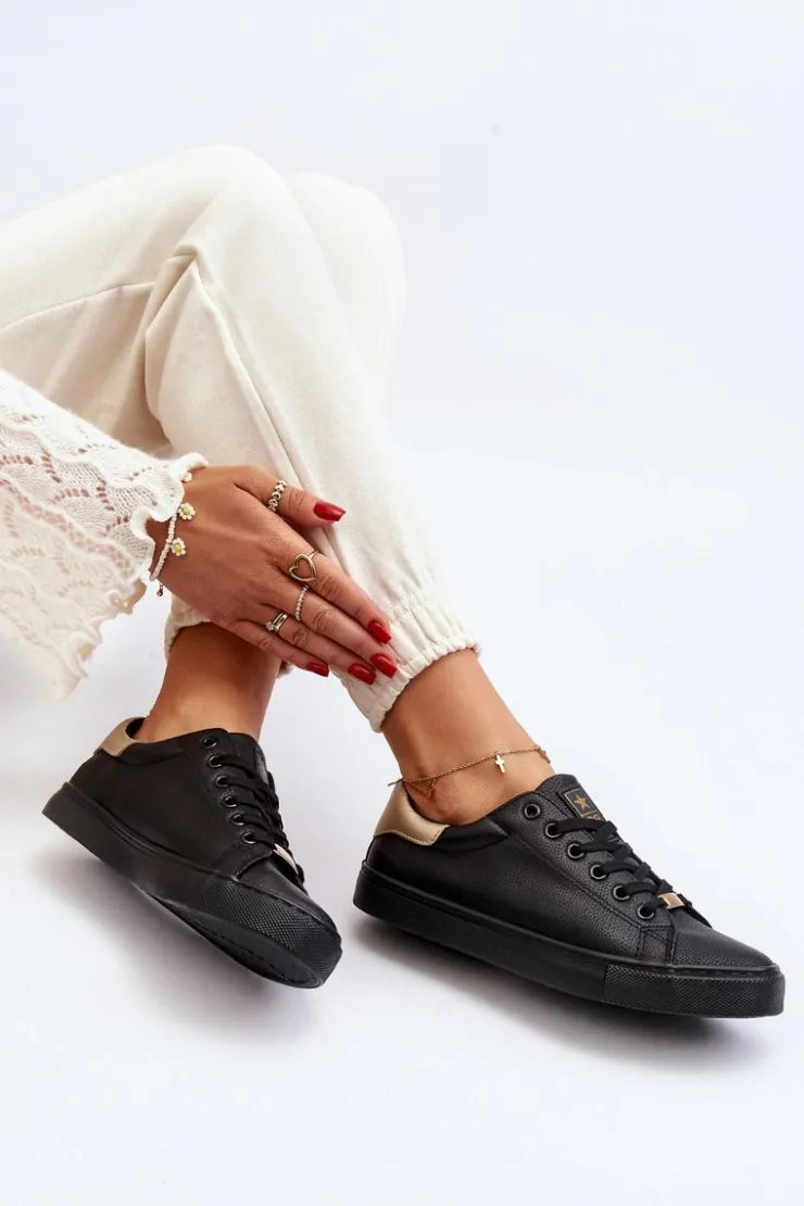 Klasyczne trampki damskie wykonane z eko skóry. Osadzone na podeszwie z gumowego tworzywa. Noski zaokrąglone. Model klasycznie sznurowany. Miękka, materiałowa wkładka zapewni wygodę podczas użytkowania nawet przez cały dzień. Fason ten będzie idealnie pasować do niemalże każdej stylizacji ze spodniami i spodenkami. Koniecznie powinny znaleźć się w Twojej wiosenno-letniej garderobie! Przy wyborze rozmiaru prosimy sugerować się tabelą rozmiarów.